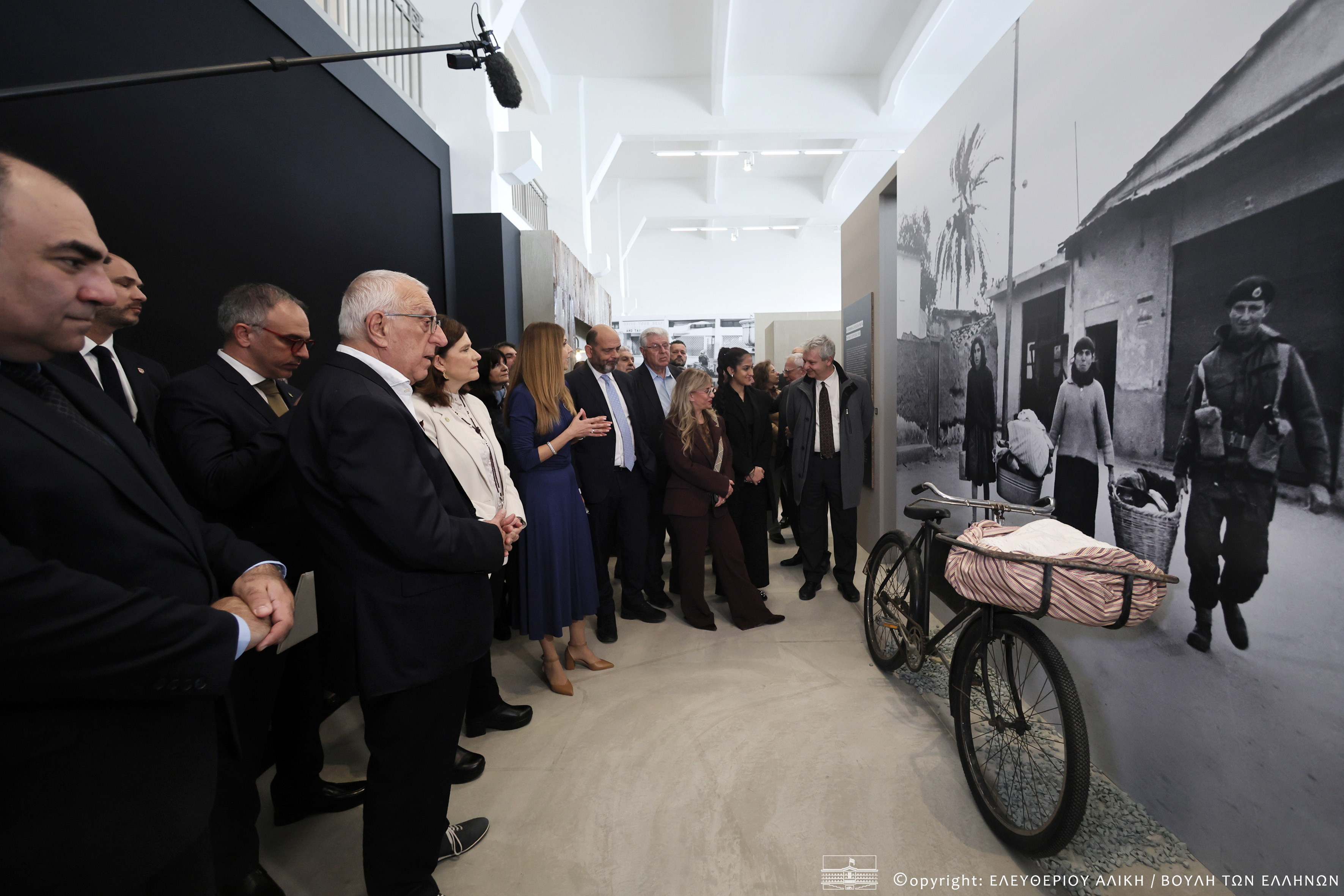 Κατά τον χαιρετισμό του, ο Πρόεδρος του Ελληνικού Κοινοβουλίου, επικαλούμενος τη συγκλονιστική περιγραφή του Κώστα Μόντη στις “Στιγμές εισβολής”, αναφέρθηκε συμβολικά στη Λευκωσία, την οποία ο ποιητής παρομοιάζει με “λυπημένο παιδάκι που του κάκου αγωνίζεσαι να το κάνης να χαμογελάση”. Όπως επεσήμανε, μέσα από φωτογραφίες, αρχειακά τεκμήρια, προφορικές μαρτυρίες και σύγχρονες καλλιτεχνικές παρεμβάσεις, η έκθεση αναδεικνύει το ασφυκτικό τοπίο των δρόμων της Λευκωσίας, αποτυπώνοντας παράλληλα τη σταδιακή αποξένωση και τις δυσκολίες που σημάδεψαν τη ζωή των κατοίκων της κατά τη διάρκεια των τελευταίων έξι δεκαετιών. «Δεν πρόκειται απλώς για μια ιστορική αφήγηση αλλά για κατάθεση ψυχής» είπε χαρακτηριστικά, και συνέχισε: «Η Πράσινη Γραμμή δεν είναι μόνο ένα γεωγραφικό όριο· είναι μια τομή στον χρόνο. Είναι οι κλειστές πόρτες και τα σφραγισμένα παράθυρα, οι οικογένειες που χωρίστηκαν, οι περιουσίες που εγκαταλείφθηκαν, οι μνήμες που έμειναν μετέωρες αλλά και η αντοχή, η επιμονή και η αξιοπρέπεια των ανθρώπων που έμαθαν να ζουν με το τραύμα, χωρίς να παραιτούνται από την ελπίδα».