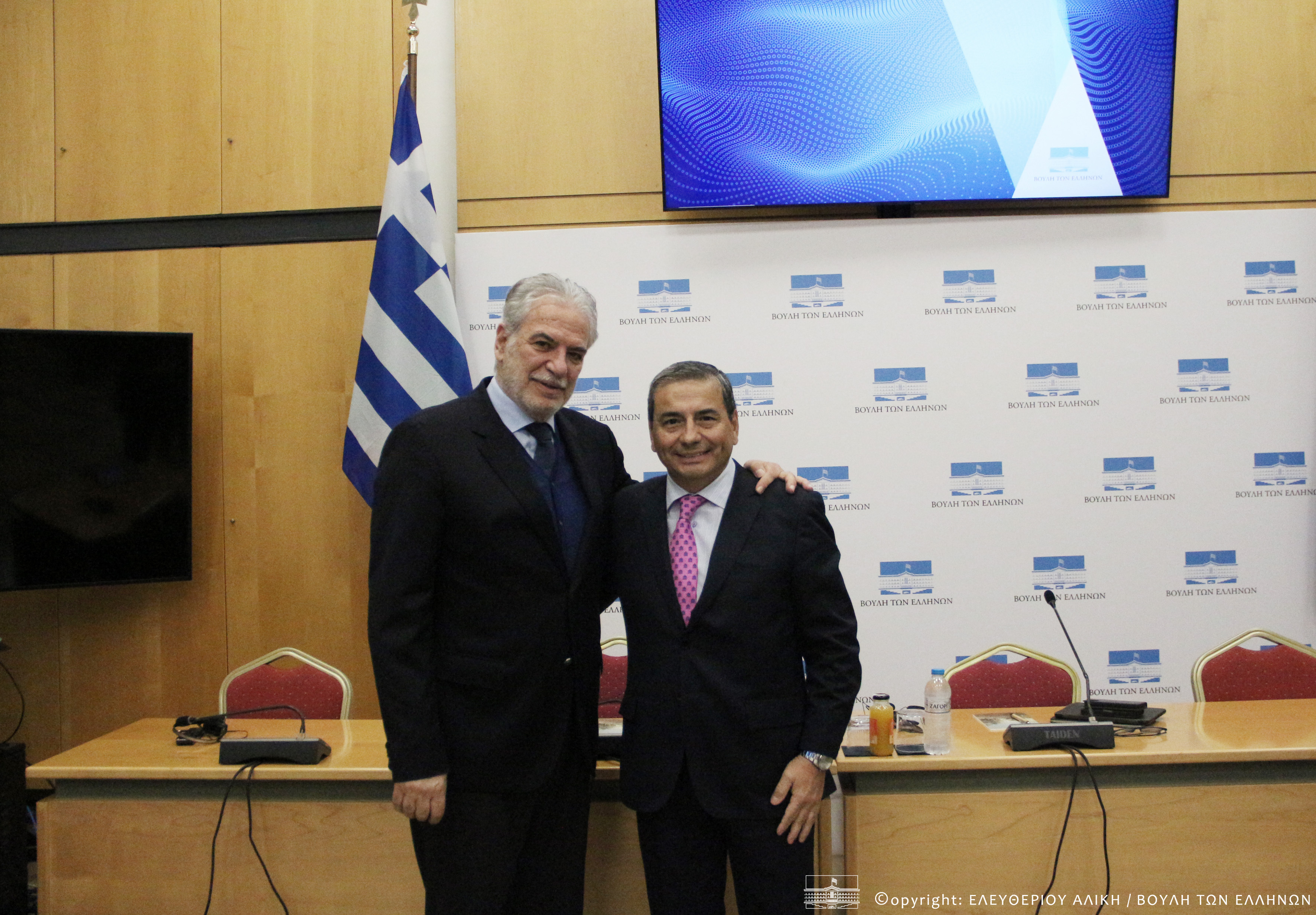Συνάντηση του Προέδρου της Κοινοβουλευτικής Ομάδας Φιλίας Ελλάδας – Χιλής, κ. Χρήστου Στυλιανίδη, με τον Πρέσβη της Δημοκρατίας της Χιλής στην Ελλάδα, κ. Juan Manuel Pino Vasquez, πραγματοποιήθηκε σήμερα στη Βουλή.