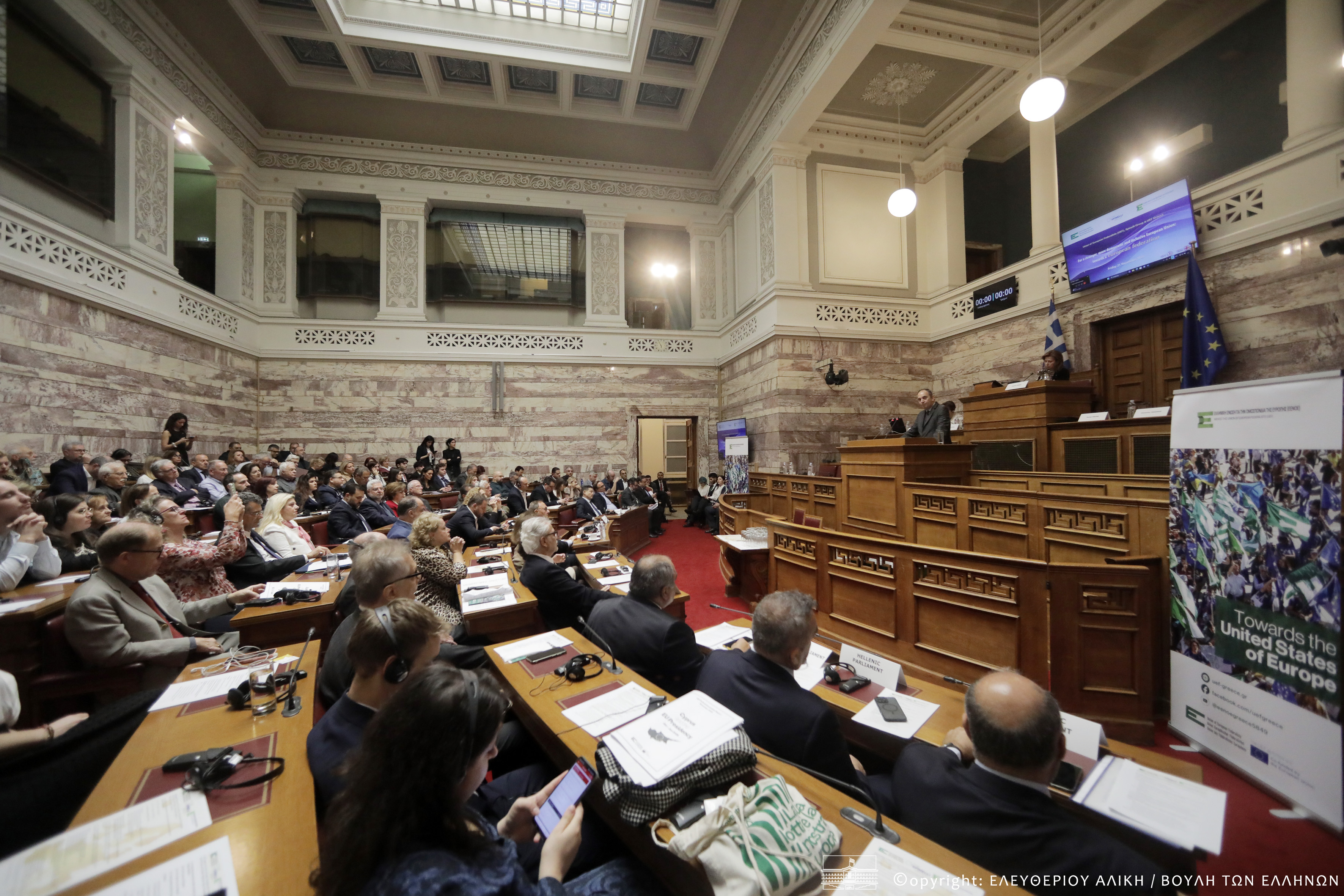 «Η παγκόσμια γεωπολιτική αστάθεια, οι ασύμμετρες απειλές, οι ενεργειακές αναταράξεις και οι προκλήσεις από αναθεωρητικές δυνάμεις στα σύνορα της ΕΕ, μας υπενθυμίζουν ότι η Ευρώπη δεν μπορεί πλέον να πορεύεται με ημίμετρα. Χρειαζόμαστε μια ισχυρή, ενιαία και φιλόδοξη ευρωπαϊκή φωνή». Με αυτό το μήνυμα ο Α’ Αντιπρόεδρος της Βουλής των Ελλήνων, κ. Ιωάννης Πλακιωτάκης, άνοιξε την αποψινή εκδήλωση της Ένωσης Ευρωπαίων Φεντεραλιστών (UEF), της Ομάδας Spinelli και της UEF Ελλάδας που φιλοξενήθηκε στην αίθουσα της Γερουσίας του Ελληνικού Κοινοβουλίου με θέμα: «Για μια ισχυρότερη, δημοκρατικότερη και πιο χωρίς αποκλεισμούς Ευρωπαϊκή Ένωση: Προς μια Ευρωπαϊκή Ομοσπονδία».