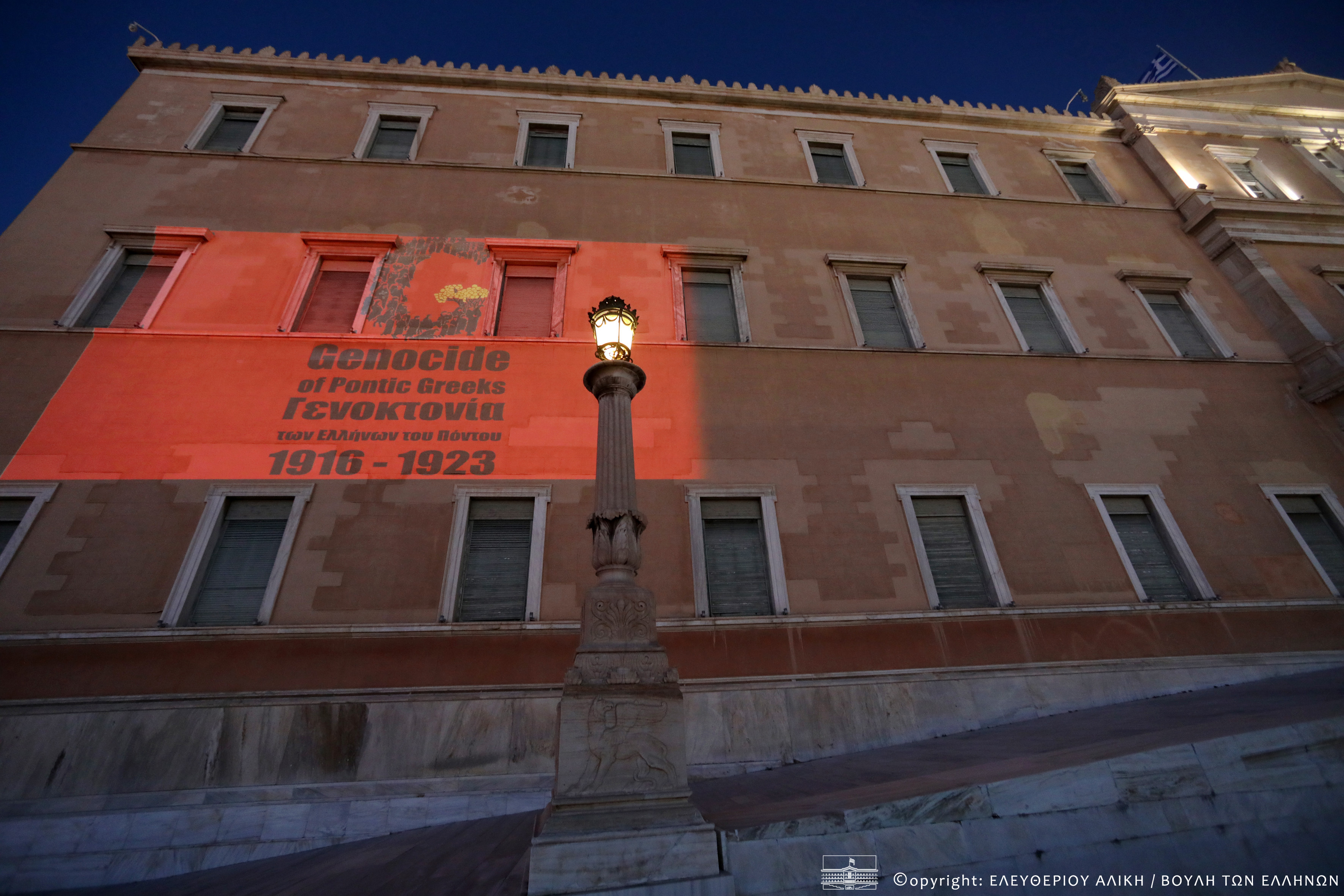 Φωταγώγηση της Βουλής σε ένδειξη τιμής και μνήμης της Γενοκτονίας των Ελλήνων του Πόντου