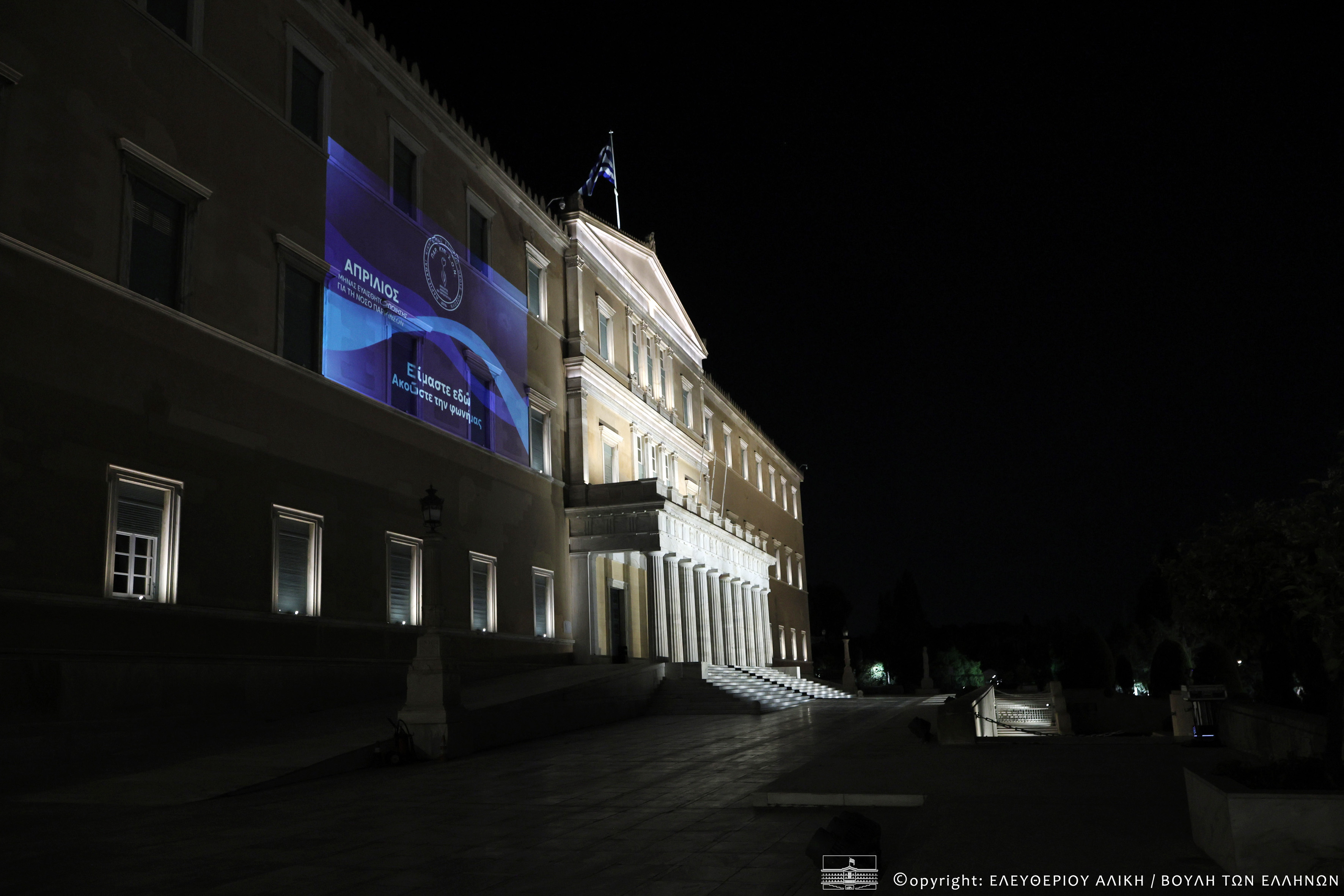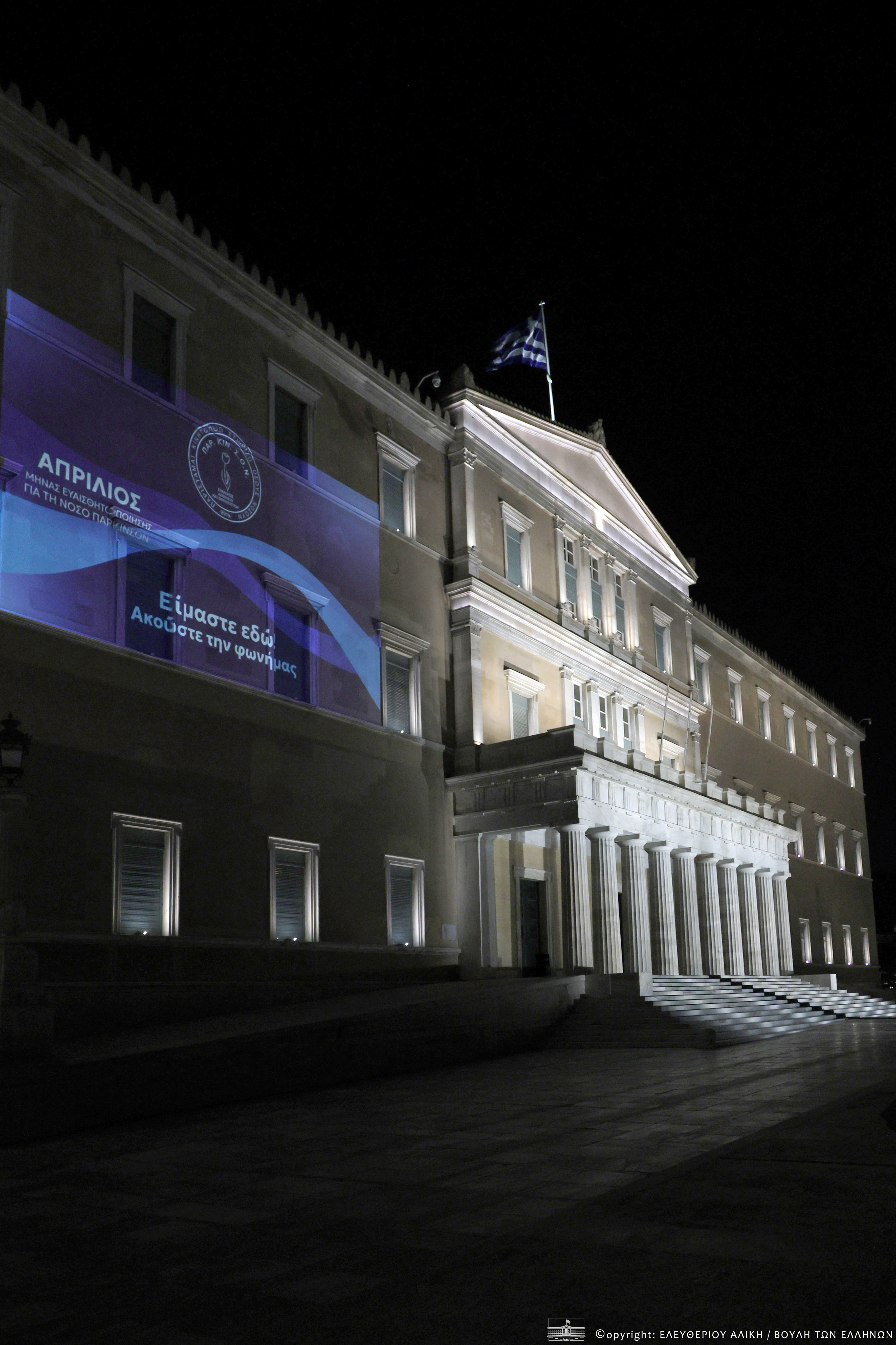 Φωταγώγηση της Βουλής των Ελλήνων για την Παγκόσμια Ημέρα Πάρκινσον