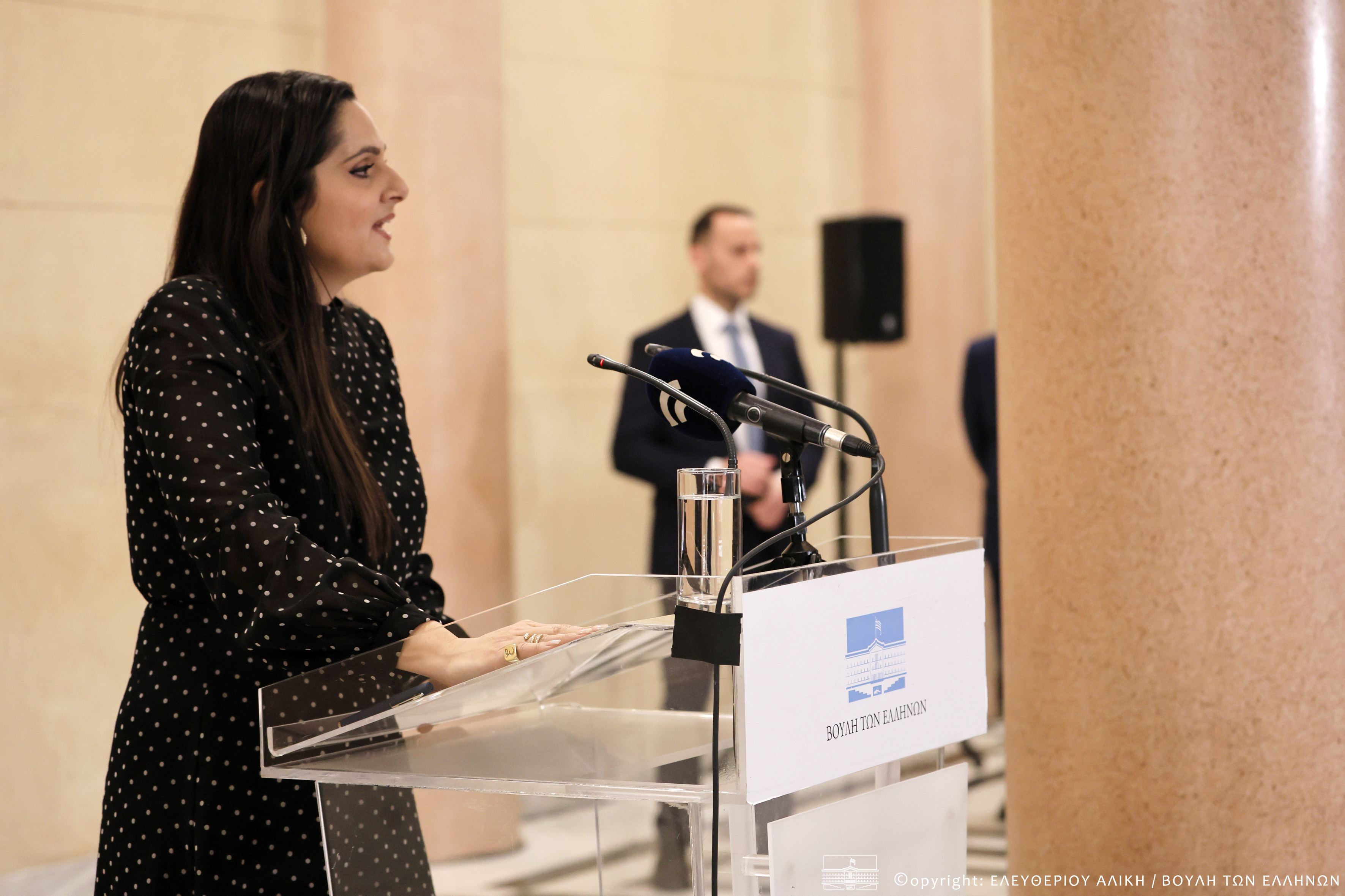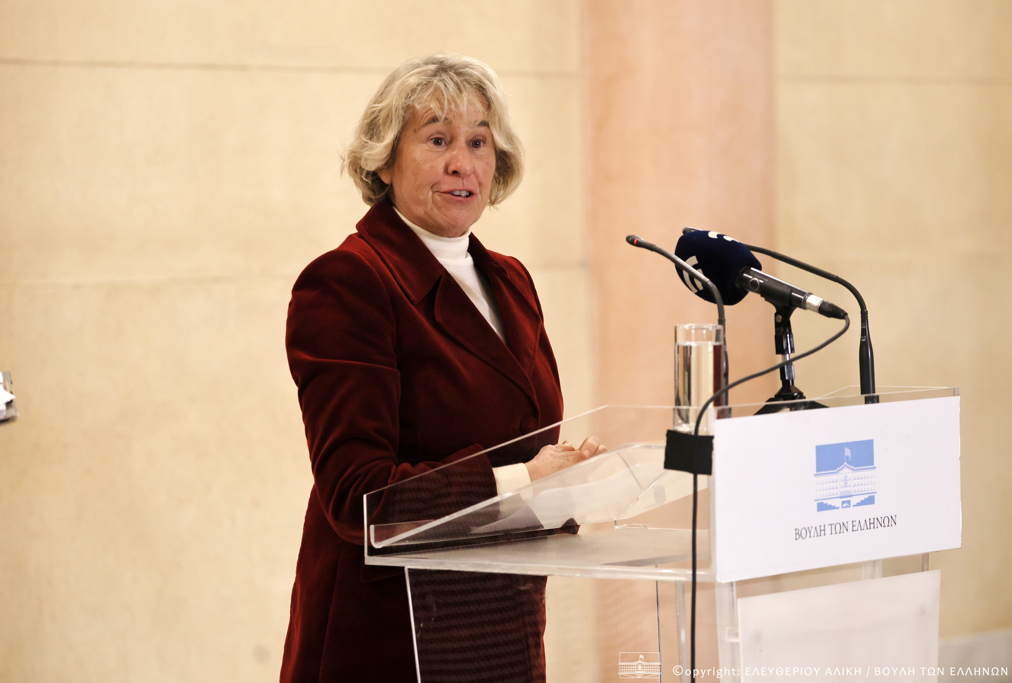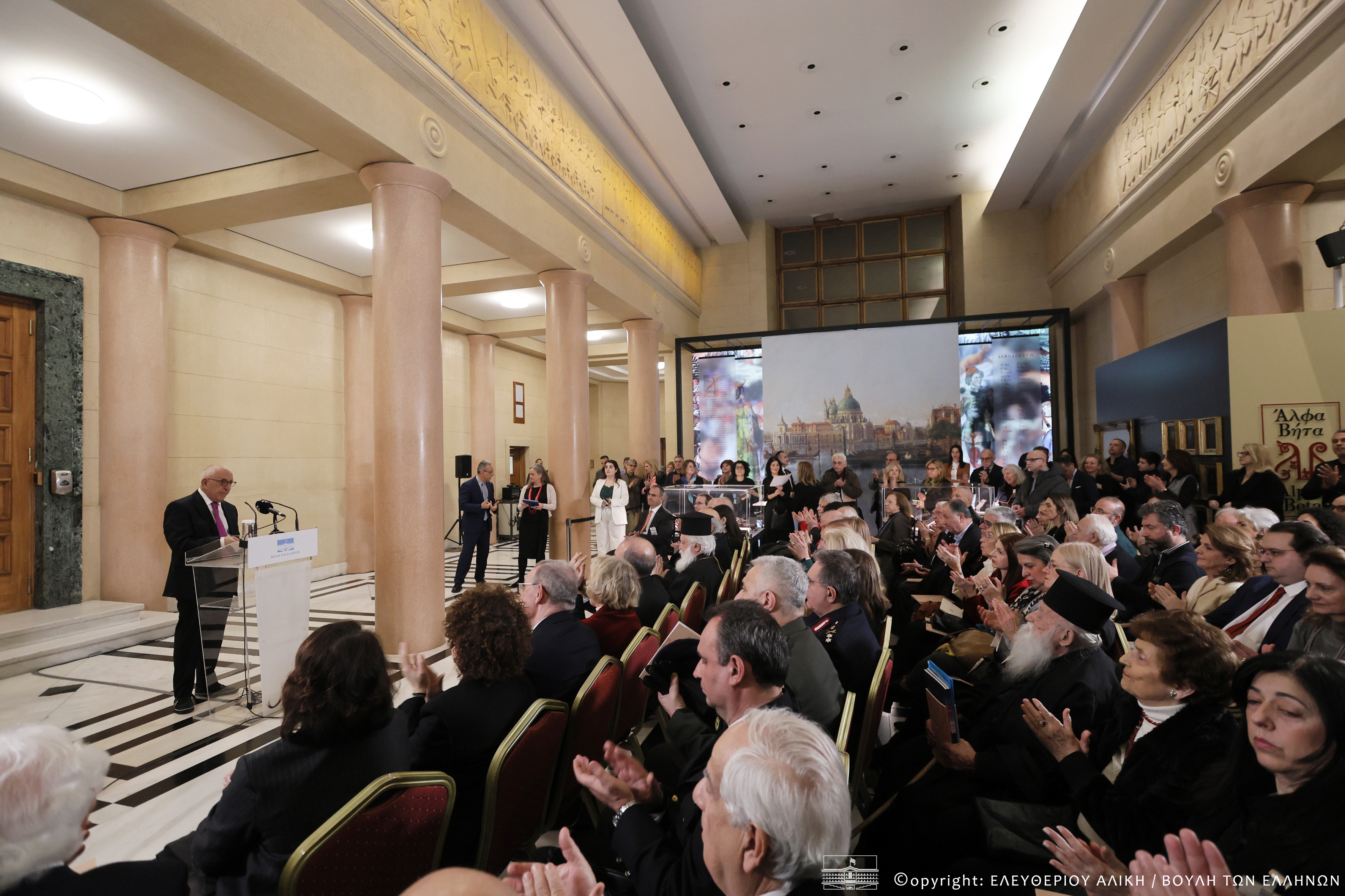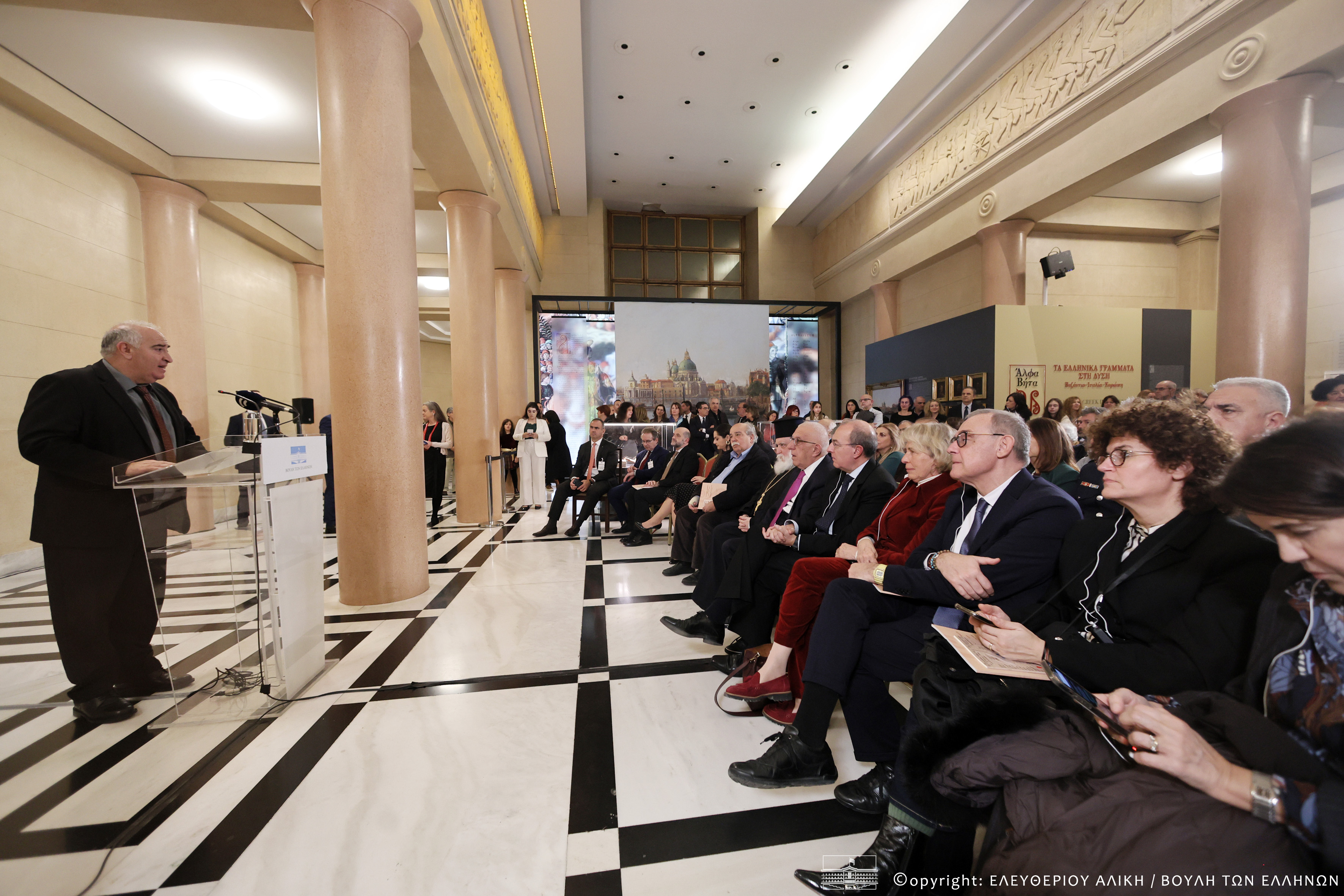 Υπογράμμισε, ακόμη, τον θεσμικό ρόλο της Βουλής των Ελλήνων και της Βιβλιοθήκης της, στην ανάδειξη αυτής της κληρονομιάς ως «ζωντανού στοιχείου της ευρωπαϊκής και παγκόσμιας πολιτισμικής ταυτότητας», επισημαίνοντας ότι η ελληνική γλώσσα παραμένει μέχρι σήμερα πηγή επιστημονικών όρων και νεολογισμών.