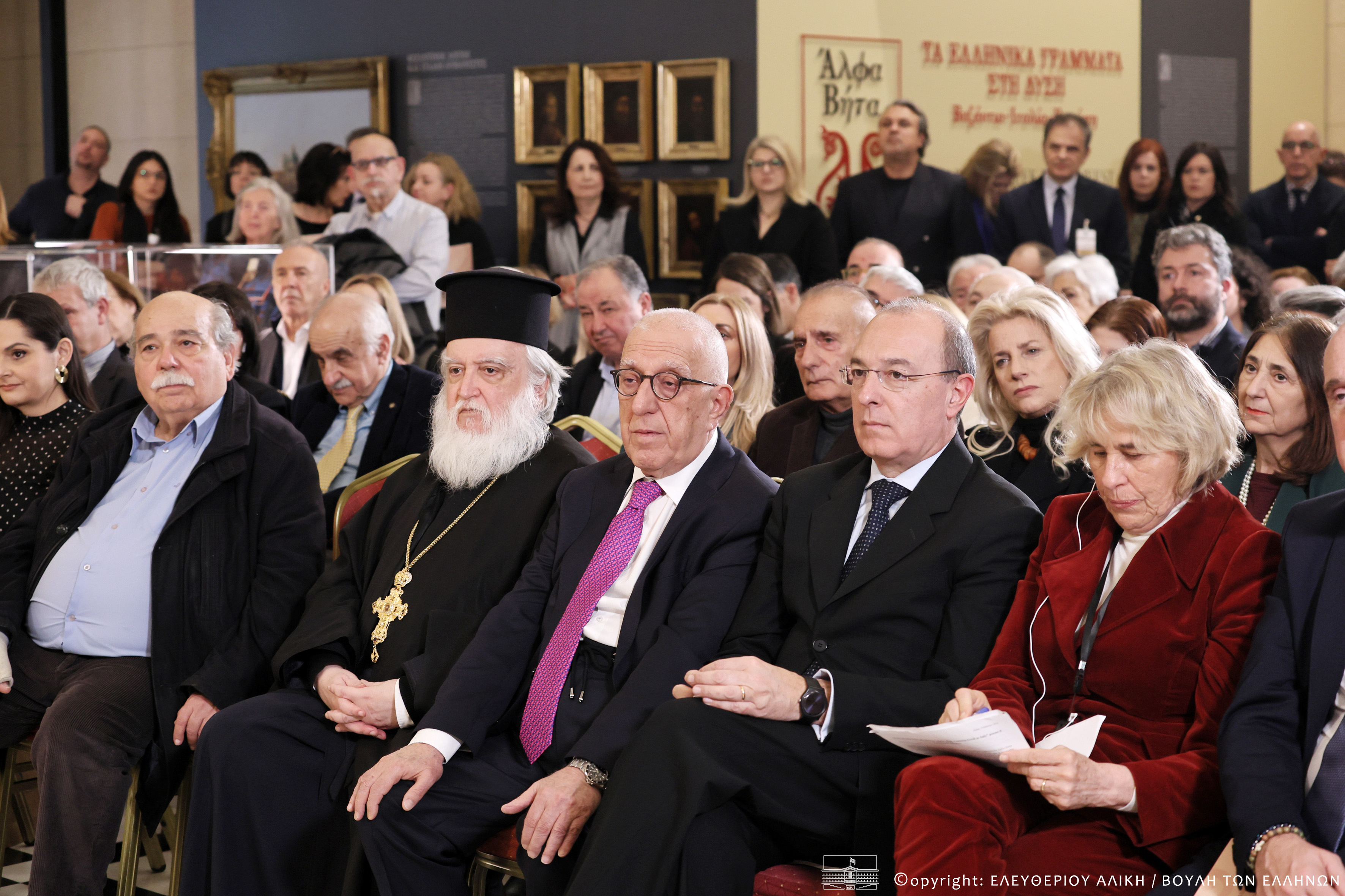 Ο Πρόεδρος της Βουλής των Ελλήνων κ. Νικήτας Κακλαμάνης, εγκαινίασε σήμερα στο Περιστύλιο του Μεγάρου της Βουλής, την Έκθεση με τίτλο «Άλφα Βήτα Τα Ελληνικά Γράμματα στη Δύση: Βυζάντιο – Ιταλία – Ευρώπη, Graeca sunt, tamen leguntur», αναδεικνύοντας τη διαχρονική πορεία, τη διάδοση και τη βαθιά επίδραση της ελληνικής γλώσσας και γραμματείας στη διαμόρφωση του ευρωπαϊκού πολιτισμού.