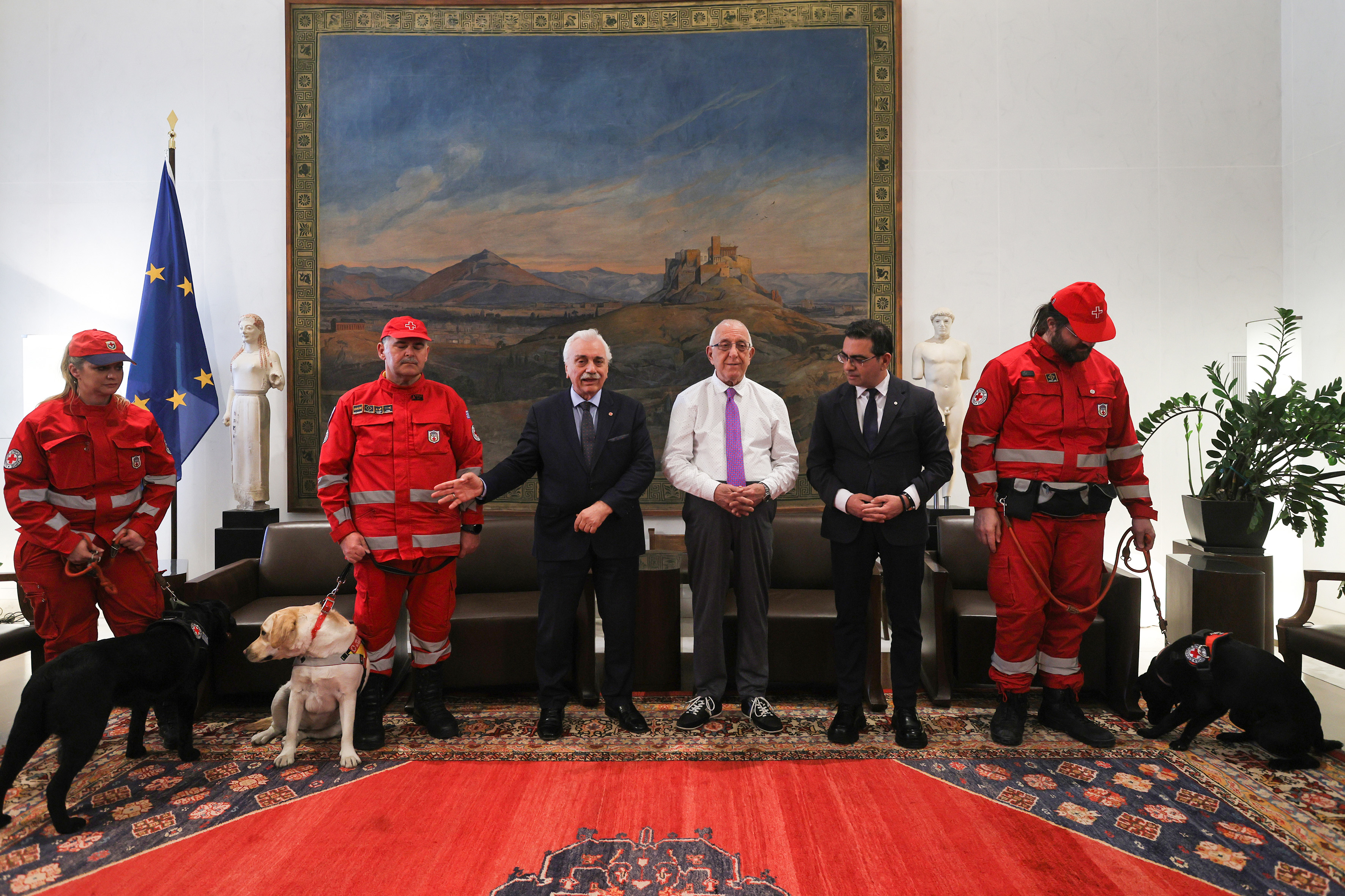 Αυτό ανακοίνωσε σήμερα ο Πρόεδρος της Βουλής των Ελλήνων, κ. Νικήτας Κακλαμάνης, υποδεχόμενος στο Κοινοβούλιο τον Πρόεδρο του Ελληνικού Ερυθρού Dr. Αντώνιο Αυγερινό, συνοδευόμενο από τρεις εθελοντές διασώστες και τα εκπαιδευμένα σκυλιά-διασώστες που είναι πολύτιμοι αρωγοί σε όλες τις διαδικασίες έρευνας και εντοπισμού αγνοουμένων.