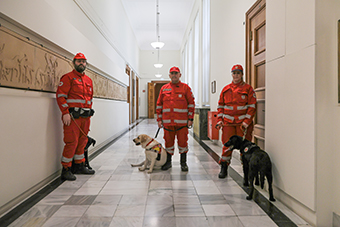 Τα δύο από τα τρία σκυλιά-διασώστες που ήρθαν στη Βουλή, ο King και η Kira, είναι αυτά που δώρισε η Βουλή για την ενίσχυση της Κυνοφιλικής Ομάδας Έρευνας και Διάσωσης (Κ9) του Ελληνικού Ερυθρού Σταυρού. Η εκπαίδευση των σκύλων αυτών έχει ήδη ξεκινήσει και περιλαμβάνει την ανίχνευση ανθρώπινου οσμικού ίχνους, την υπακοή, τον προσανατολισμό και την εργασία υπό πίεση, ώστε να τεθούν άμεσα στην κρίσιμη αυτή υπηρεσία.