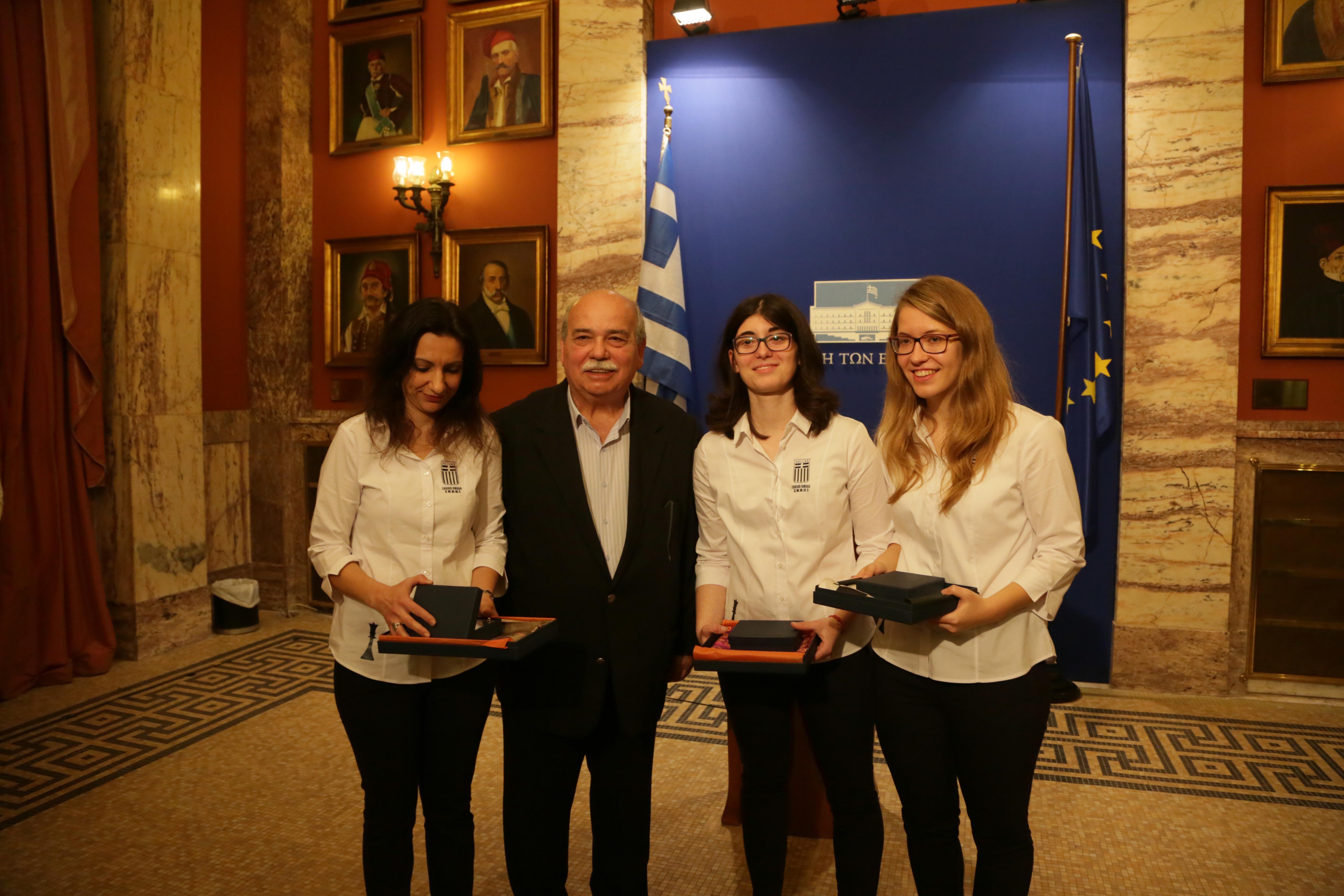 Ο Πρόεδρος της Βουλής κ. Νικόλαος Βούτσης βράβευσε σήμερα, με αφορμή τον εορτασμό της Διεθνούς Ημέρας Γυναικών, τις πρωταθλήτριες της Εθνικής Ομάδας στο Σκάκι, κυρίες Άννα Μαρία Μπότσαρη, Σταυρούλα Τσολακίδου και Αναστασία Αβραμίδου. Η εκδήλωση πραγματοποιήθηκε στο Εντευκτήριο των Βουλευτών.
