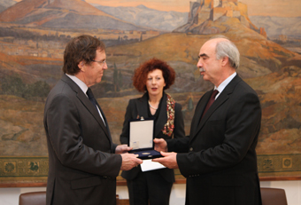 Ο Πρόεδρος της Βουλής κ. Ευάγγελος Μεϊμαράκης συναντήθηκε με τον Πρόεδρο της Κοινοβουλευτικής Συνέλευσης του Συμβουλίου της Ευρώπης κ. Jean-Claude Mignion, ο οποίος επισκέφθηκε σήμερα τη Βουλή των Ελλήνων επικεφαλής αντιπροσωπείας. Ο κ. Μεϊμαράκης απένειμε στον κ. Mignion το χρυσό μετάλλιο της Βουλής των Ελλήνων, το οποίο απονέμεται σε εξέχουσες προσωπικότητες που έχουν διακριθεί για το σημαντικό έργο τους.