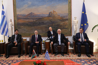 «Εξοχώτατε Κύριε Πρόεδρε, σας καλωσορίζω στο Ελληνικό Κοινοβούλιο, σε μία περίοδο αλλαγών και σημαντικών κοινωνικών εξελίξεων», είπε ο Πρόεδρος της Βουλής κ. N. Κακλαμάνης και υπογράμμισε: «Στο πρόσωπό σας η Ελλάδα βλέπει έναν διαχρονικό φίλο και έναν κρίσιμο περιφερειακό εταίρο, με τον οποίο επιθυμούμε να οικοδομήσουμε ακόμη στενότερη συνεργασία».