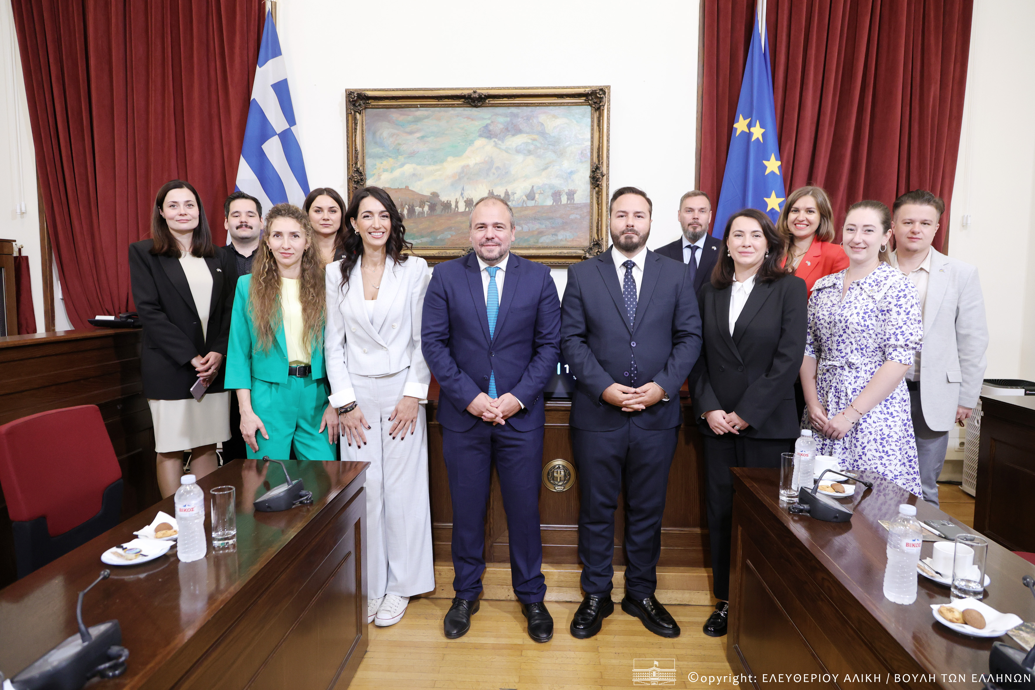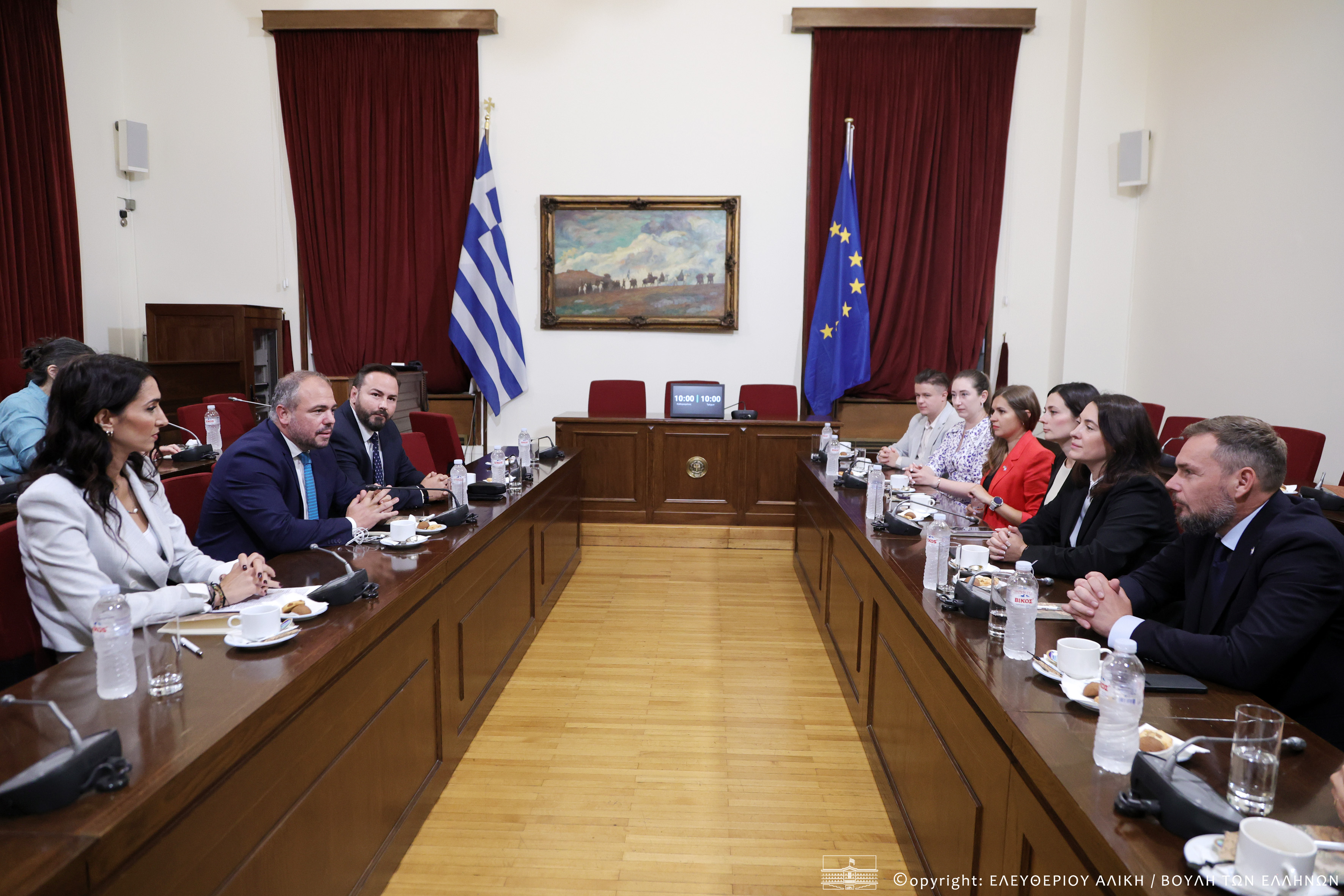 Ο Πρόεδρος της Επιτροπής Ελληνισμού της Διασποράς κ. Φίλιππος Φόρτωμας, ο Αντιπρόεδρος της Κοινοβουλευτικής Ομάδας Φιλίας Ελλάδας–Ουκρανίας κ. Διαμαντής Γκολιδάκης και η Γραμματέας της κ. Κατερίνα Σπυριδάκη συναντήθηκαν σήμερα στη Βουλή με 10μελή αντιπροσωπεία στελεχών του Υπουργείου Πολεοδομίας και Αστικής Ανάπτυξης από την Ουκρανία, που πραγματοποιεί ολιγοήμερη επίσκεψη στην Αθήνα μετά από πρόσκληση του Δήμου Πειραιά, με προβολή στη μελλοντική ανάγκη αποκατάστασης και ανοικοδόμησης ενόψει του τερματισμού του πολέμου.