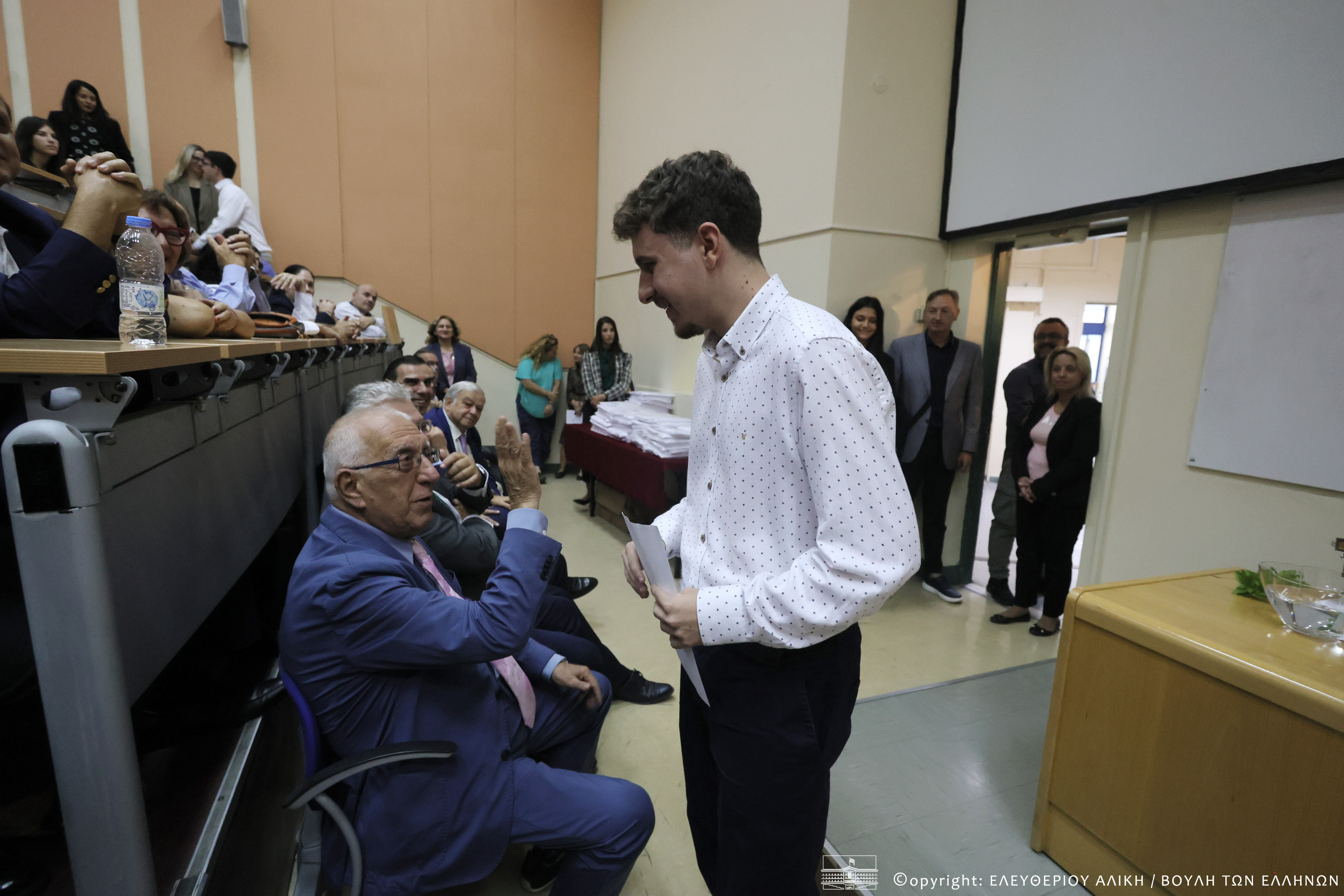 Μετά το πέρας των χαιρετισμών, ο κ. Κώστας Παναγιώτου εκπρόσωπος του Ιδρύματος «Παύλος Γιαννακόπουλος» απένειμε βραβεία αριστείας στους πρωτοετείς φοιτητές ενώ διάβασε και συγχαρητήρια επιστολή του Προέδρου του, κ. Δημήτρη Γιαννακόπουλου.