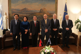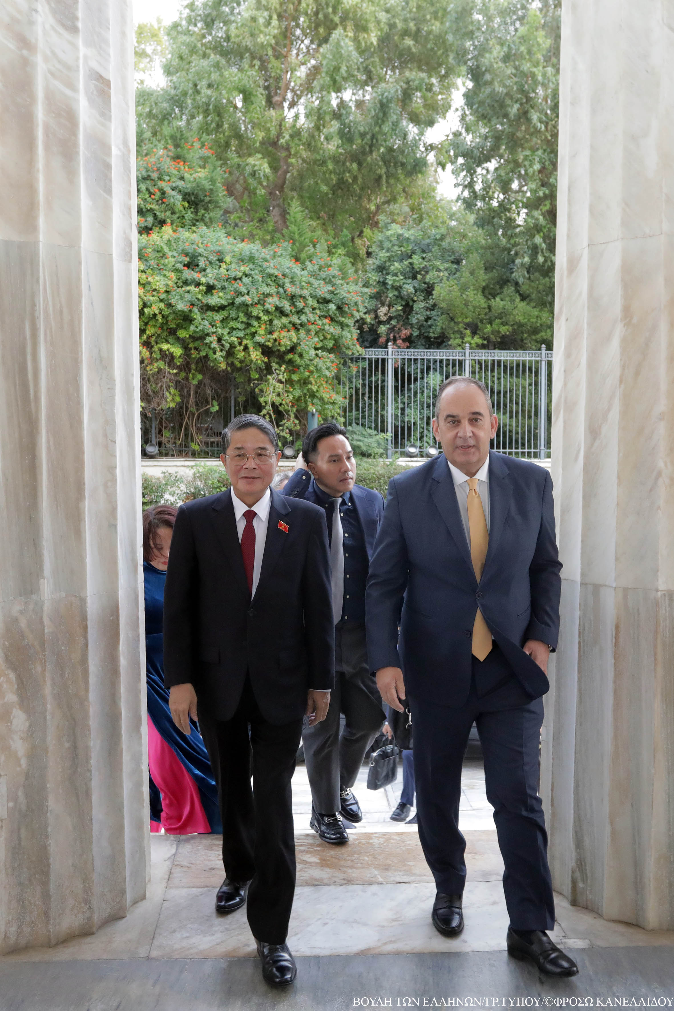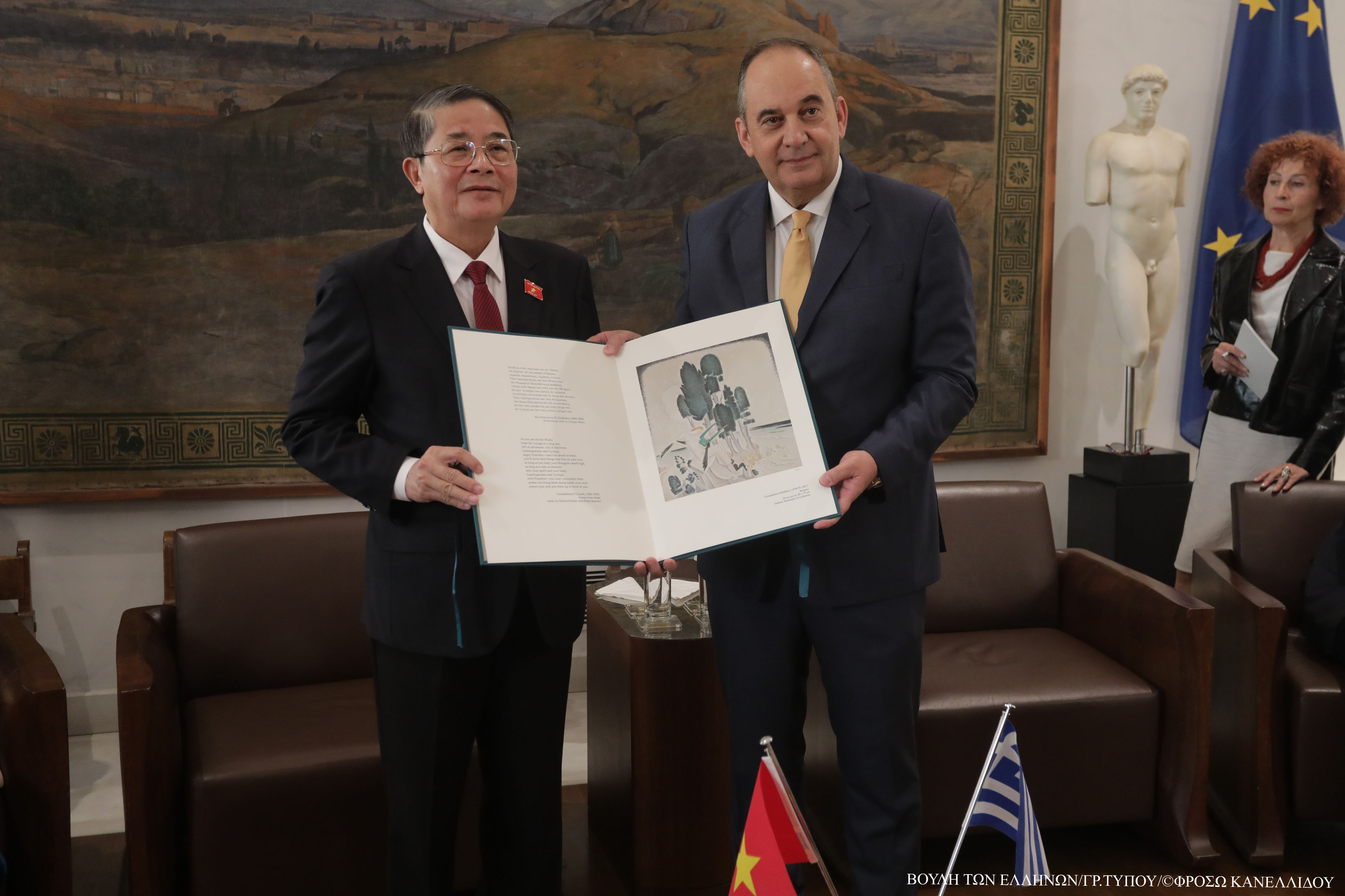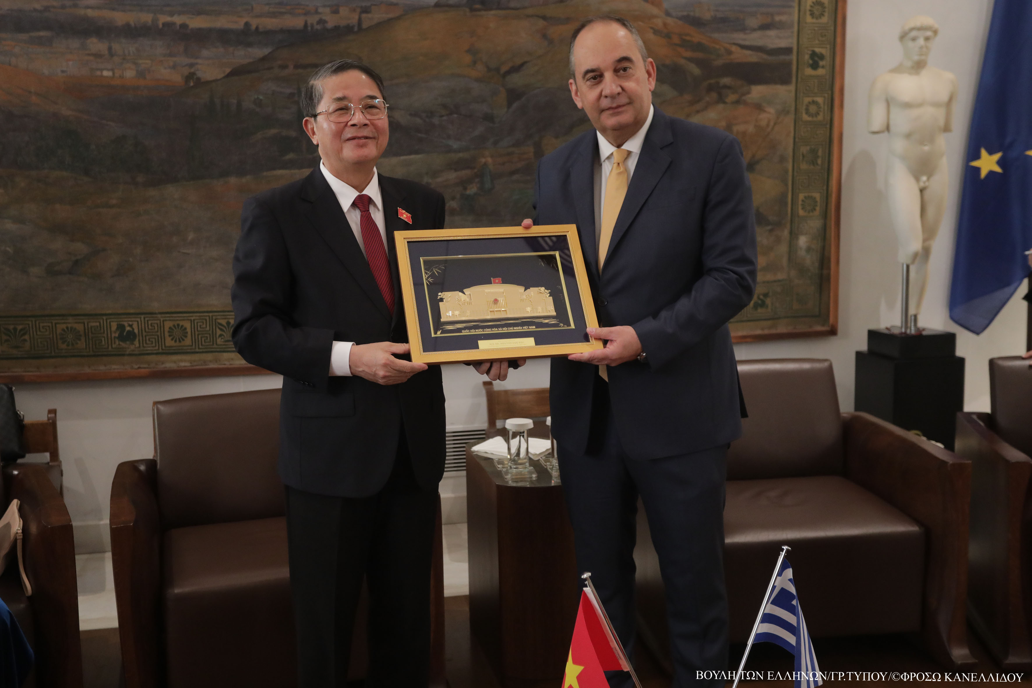 Στη συνάντηση παρέστησαν επίσης οι βουλευτές κ.κ. Ευστράτιος Σιμόπουλος, Πρόεδρος της Ειδικής Μόνιμης Επιτροπής Έρευνας και Τεχνολογίας και Αθανάσιος Καββαδάς, Πρόεδρος της Διαρκούς Επιτροπής Οικονομικών Υποθέσεων, καθώς και η Πρέσβης του Βιετνάμ στην Αθήνα, κ. Pham Thi Thu Huong.