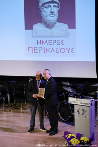 Στον Πρόεδρο της Βουλής των Ελλήνων, κ. Νικήτα Κακλαμάνη, απονεμήθηκε το τιμητικό «Βραβείο Περικλέους», για τη συνολική προσφορά του στον δημόσιο πολιτικό βίο της χώρας, από τον Δήμαρχο Παπάγου – Χολαργού κ. Ηλία Αποστολόπουλο, στο πλαίσιο του θεσμού του Δήμου «Ημέρες Περικλέους».