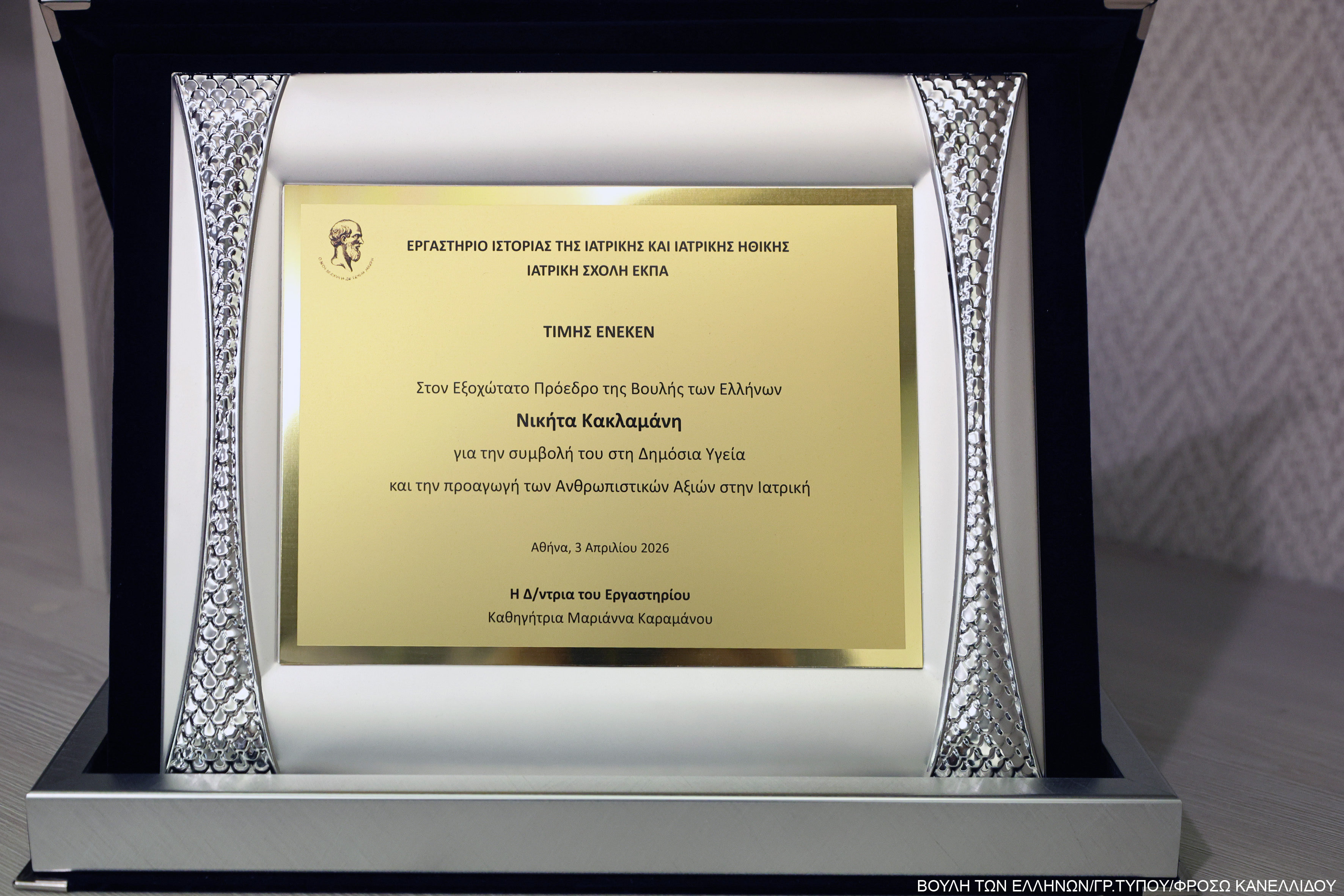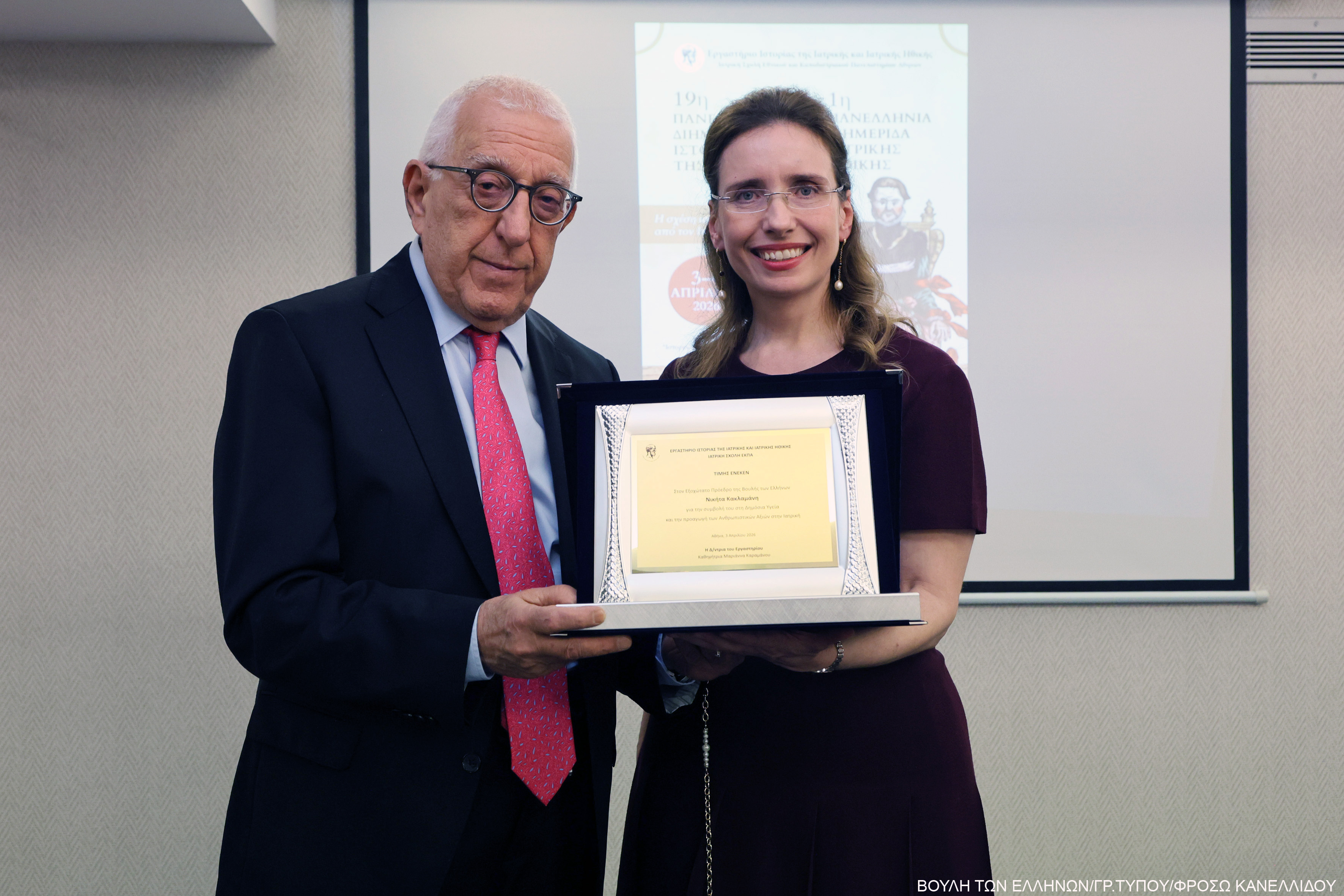 Βράβευση του Προέδρου της Βουλής των Ελλήνων από το Εργαστήριο Ιστορίας της Ιατρικής και Ιατρικής Ηθικής της Ιατρικής Σχολής ΕΚΠΑ