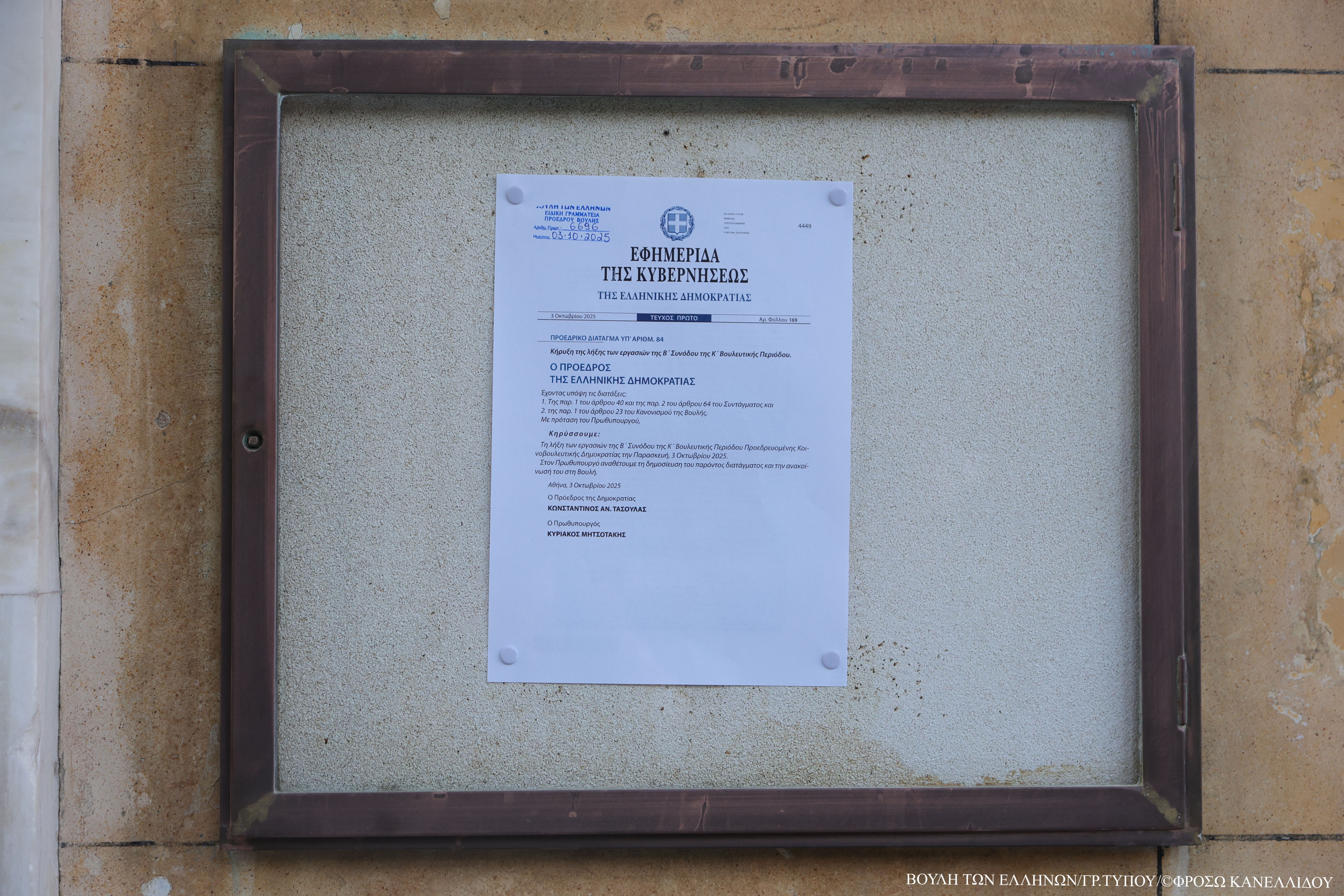 Η θυροκόλληση του Προεδρικού Διατάγματος έγινε την Παρασκευή 3 Οκτωβρίου 2025, στις 18:30.