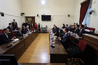 Την ομάδα σπουδαστών συνόδευσε ο Διευθυντής της Ελληνικής Διπλωματικής Ακαδημίας, κ. Μιχαήλ-Χρήστος Διάμεσης (Πρέσβης) και ο Διευθυντής Σπουδών κ. Μιχαήλ Αγγελόπουλος (Πληρεξούσιος Υπουργός Β’). Στη συνάντηση, παρέστη και ο Διπλωματικός Σύμβουλος της Βουλής κ. Κων/νος Οικονομίδης.