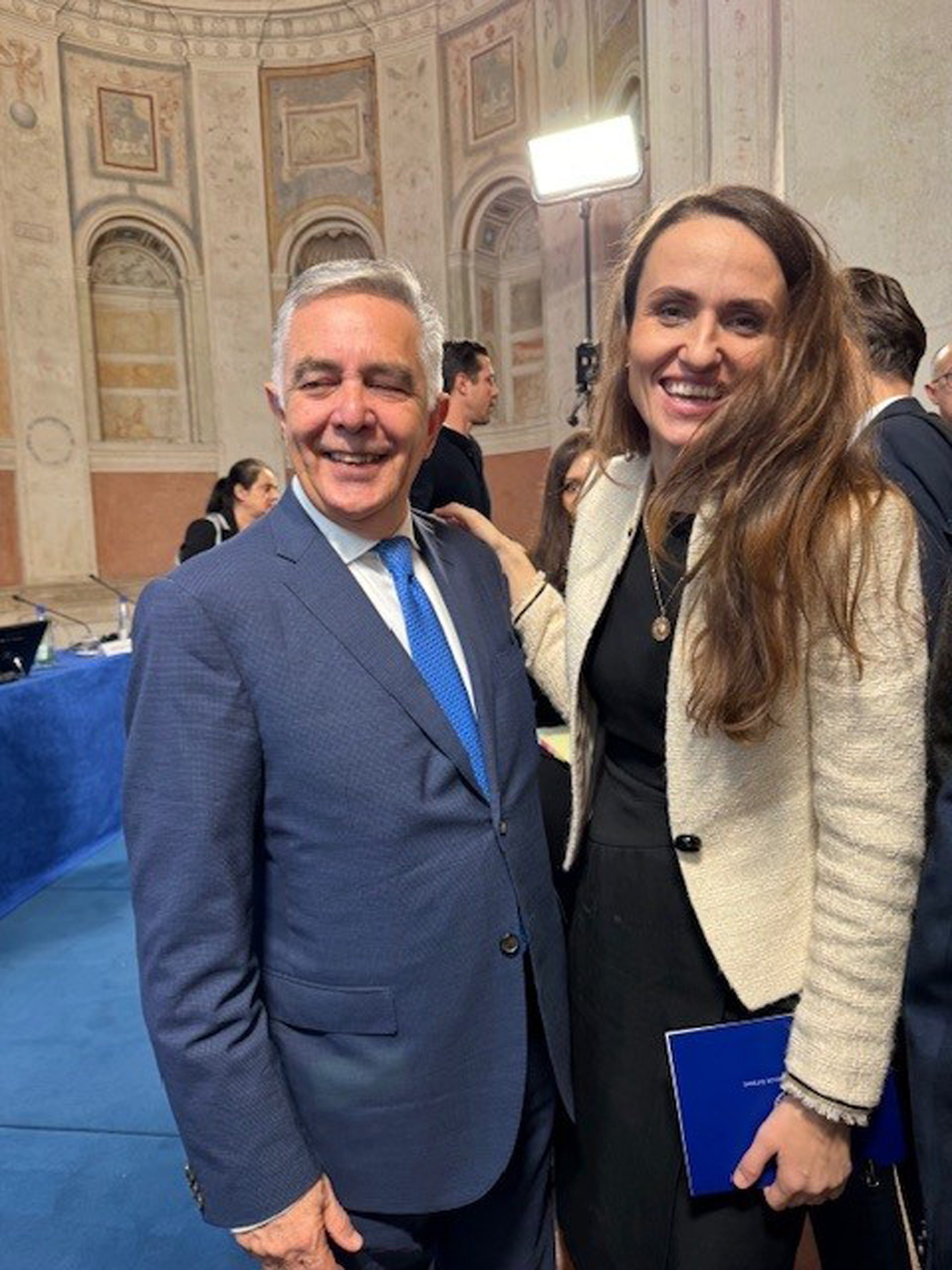 Και κατέληξε τονίζοντας : «Η σύγχρονη Ευρώπη χρωστά πολλά σε αυτό το διάλογο μεταξύ των πολιτισμών. Και υπό αυτό το πρίσμα οφείλουμε να προσβλέπουμε στο μέλλον. Ο συστηματικός δημοκρατικός διάλογος μεταξύ των εθνών, μέσω γλωσσών που έχουν συμβάλει στη διαμόρφωση της προόδου και του πολιτισμού της ανθρωπότητας, όπως τα ιταλικά, δεν αποτελεί απλά μια άσκηση διπλωματίας. Είναι το πιο ισχυρό εργαλείο που διαθέτουμε για να σφυρηλατήσουμε έναν κόσμο καλύτερο και ειρηνικό. Όταν οι άνθρωποι συνεννοούνται μέσω της κουλτούρας, της τέχνης, της φιλοσοφίας, χτίζουν γέφυρες που υπερβαίνουν τα συμφέροντα καθενός και αγγίζουν την ουσία της κοινής μας ύπαρξης».