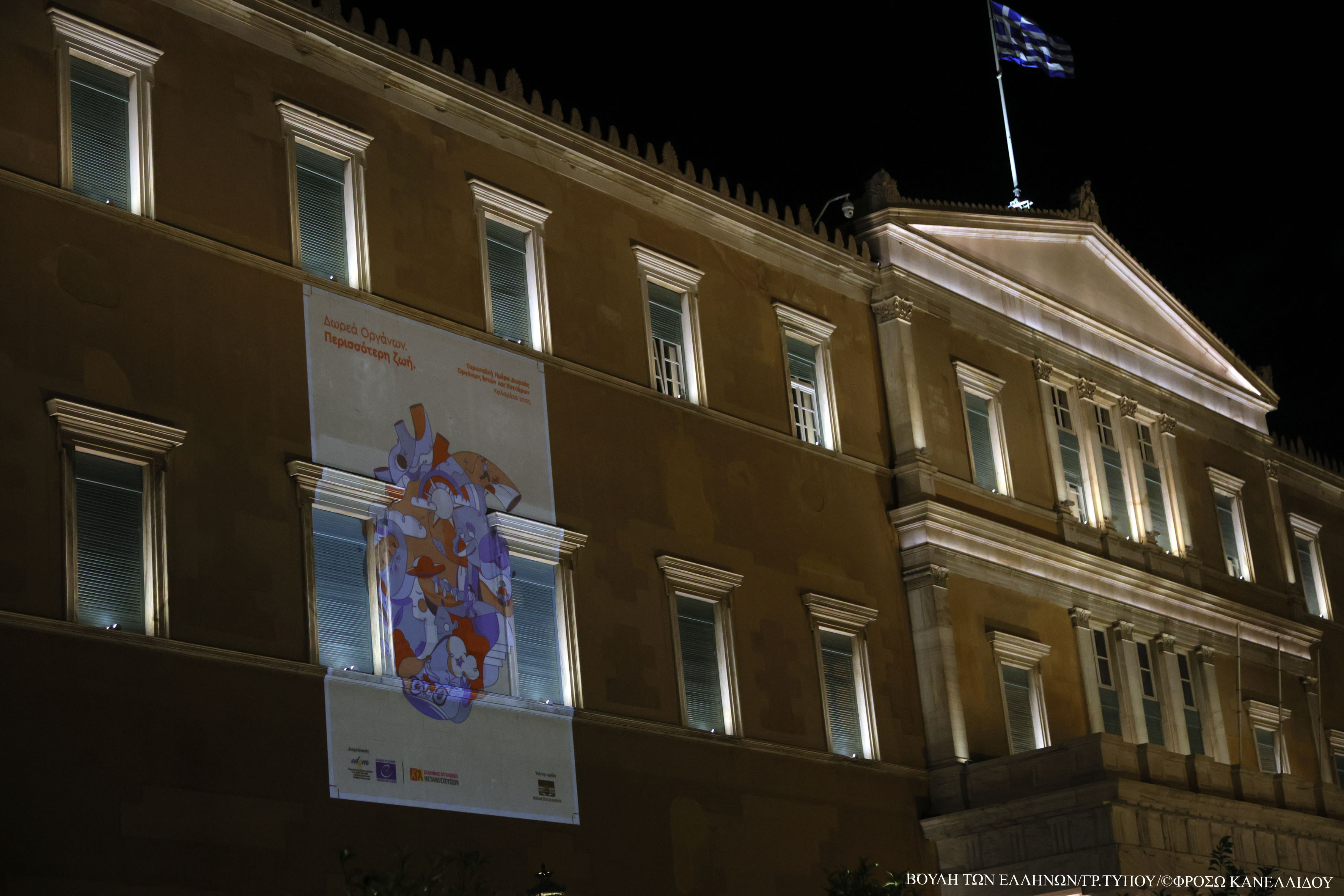 Η Βουλή των Ελλήνων αποδίδει τιμή στους Δότες Οργάνων Ιστών και Κυττάρων με τη φωταγώγηση της πρόσοψής της