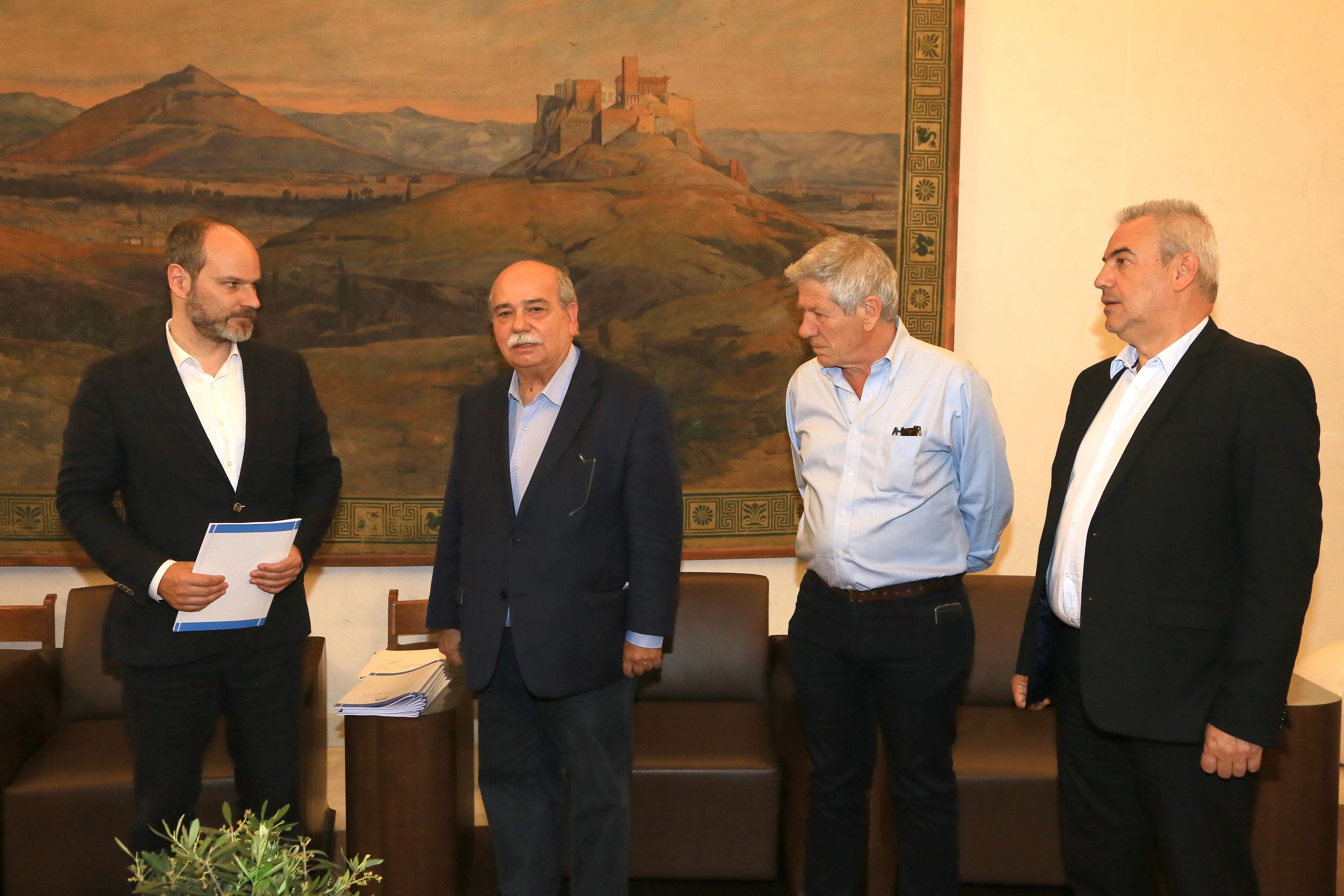 Ο Πρόεδρος της Βουλής κ. Νικόλαος Βούτσης παρέλαβε σήμερα από το νέο Συντονιστή του Γραφείου Προϋπολογισμού του Κράτους στη Βουλή κ. Φραγκίσκο Κουτεντάκη, την Έκθεση Α τριμήνου 2018, παρουσία του Προέδρου της Διαρκούς Επιτροπής Οικονομικών Υποθέσεων κ. Γεράσιμου Μπαλαούρα και του Αντιπροέδρου κ. Χρήστου Μπγιάλα.