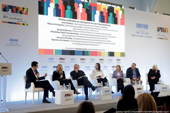 Στον δεύτερο κύκλο συζήτησης με θέμα την εργασία και την τοπική ανάπτυξη αναδείχθηκε η σύνδεση της δημογραφικής πολιτικής με την οικονομική δραστηριότητα και τις ευκαιρίες απασχόλησης. Ιδιαίτερη αναφορά έγινε στη γυναικεία επιχειρηματικότητα και στην ανάγκη ενίσχυσης της συμμετοχής των γυναικών στην αγορά εργασίας, μέσα από στοχευμένα χρηματοδοτικά εργαλεία και δομές υποστήριξης. Παράλληλα, συζητήθηκαν πολιτικές αποκέντρωσης και ενδυνάμωσης της περιφέρειας, ώστε να δημιουργηθούν βιώσιμες θέσεις εργασίας εκτός μεγάλων αστικών κέντρων. Έμφαση δόθηκε επίσης στη φιλική προσέγγιση που πρέπει να δείξουν οι εταιρείες, με ευέλικτα ωράρια και πρακτικές τηλεργασίας, ως βασικοί πυλώνες για την ισορροπία επαγγελματικής και οικογενειακής ζωής.