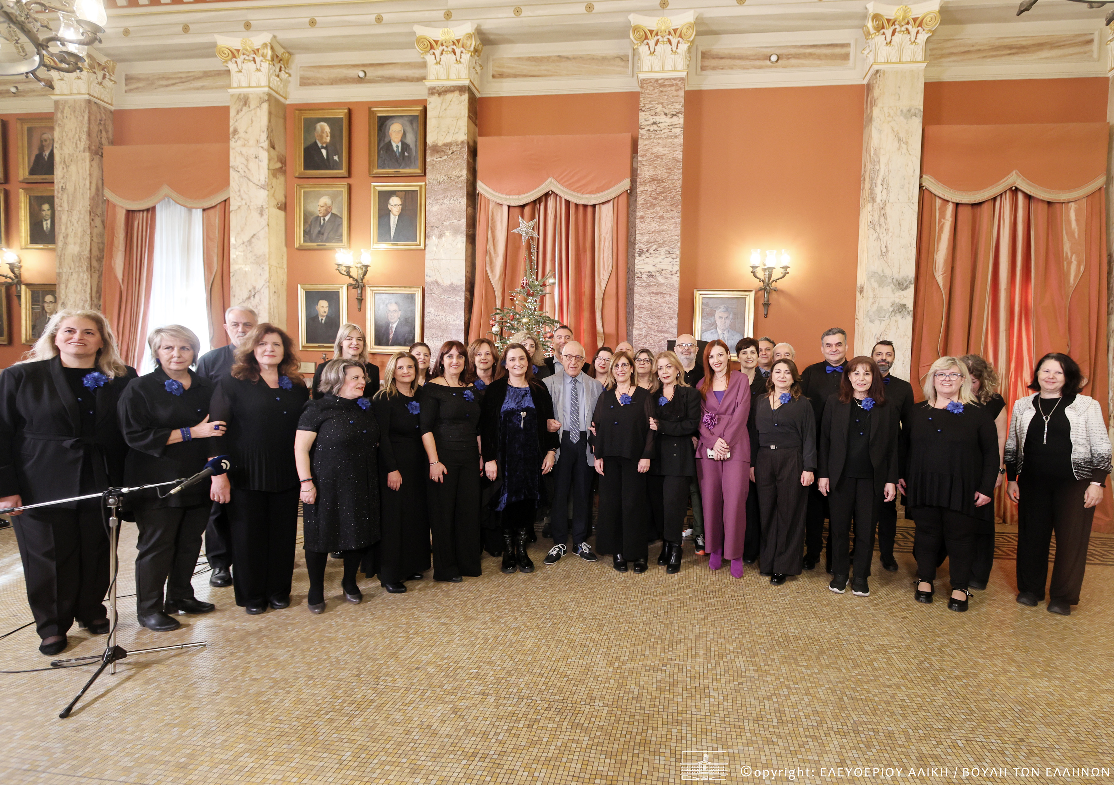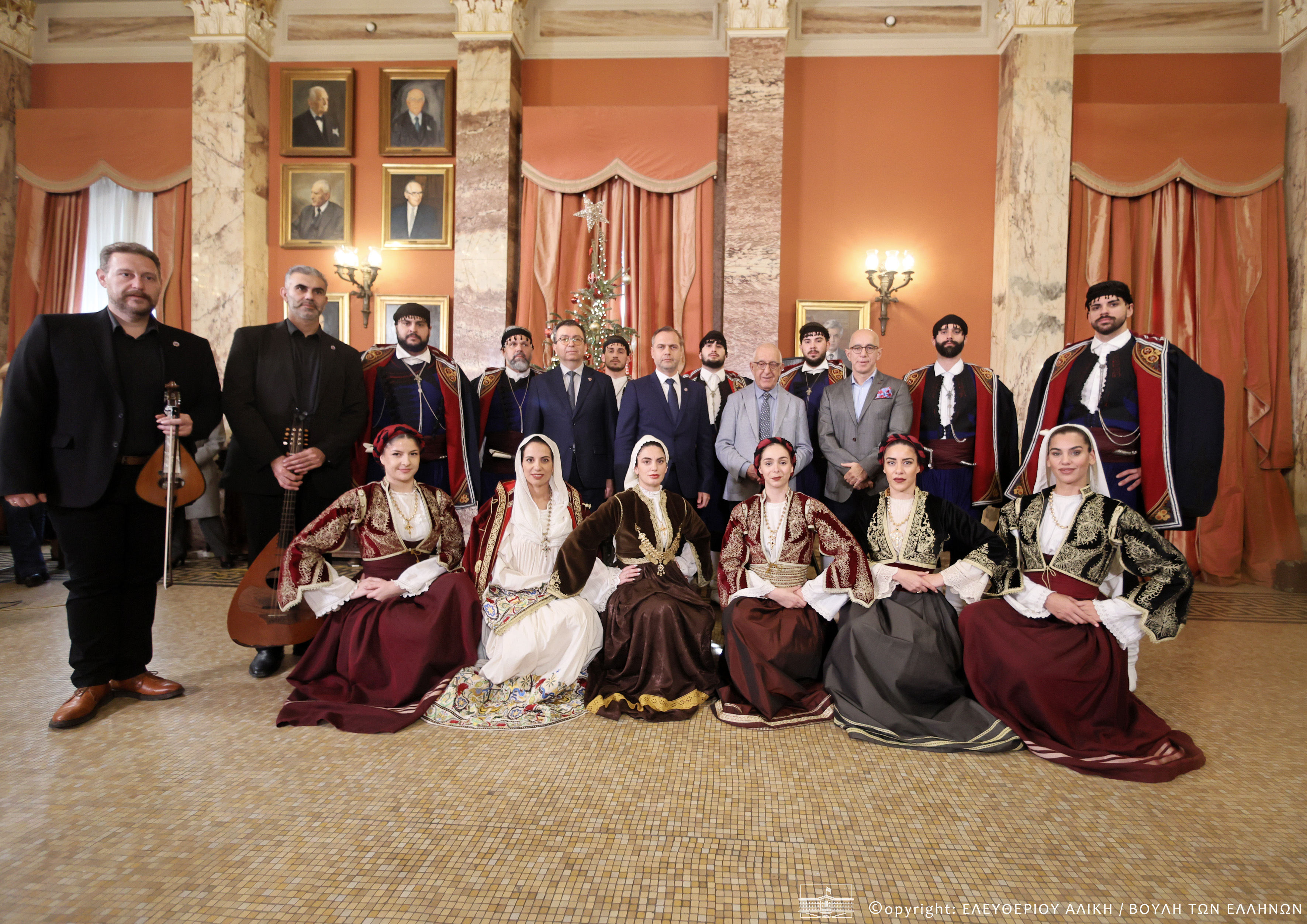 Μέσα σε μια λαμπερή και εορταστική ατμόσφαιρα, το Μέγαρο της Βουλής υποδέχθηκε σήμερα τις μελωδίες της παράδοσης, καθώς κάλαντα και χοροί από κάθε γωνιά της πατρίδας μας πλημμύρισαν τους χώρους του Κοινοβουλίου και μετέφεραν το χαρμόσυνο μήνυμα των Χριστουγέννων.