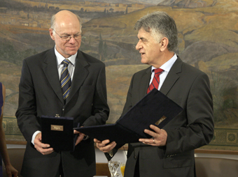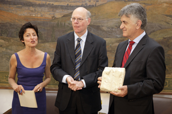 Ο Πρόεδρος της Βουλής απένειμε στον Πρόεδρο της Γερμανικής Ομοσπονδιακής Βουλής το χρυσό μετάλλιο της Βουλής των Ελλήνων που απεικονίζει την ανάγλυφη μορφή του Περικλή. Ο κ. Lammert προσέφερε στον κ. Πετσάλνικο ένα αντίγραφο τμήματος του Ναού της Περγάμου που απεικονίζει την Ευρώπη πάνω στον ταύρο λέγοντας χαρακτηριστικά πως «με τον ίδιο τρόπο που η Ευρώπη αρπάζει από τα κέρατα τον ταύρο έτσι και εμείς θα αρπάξουμε την κρίση και θα την αντιμετωπίσουμε».