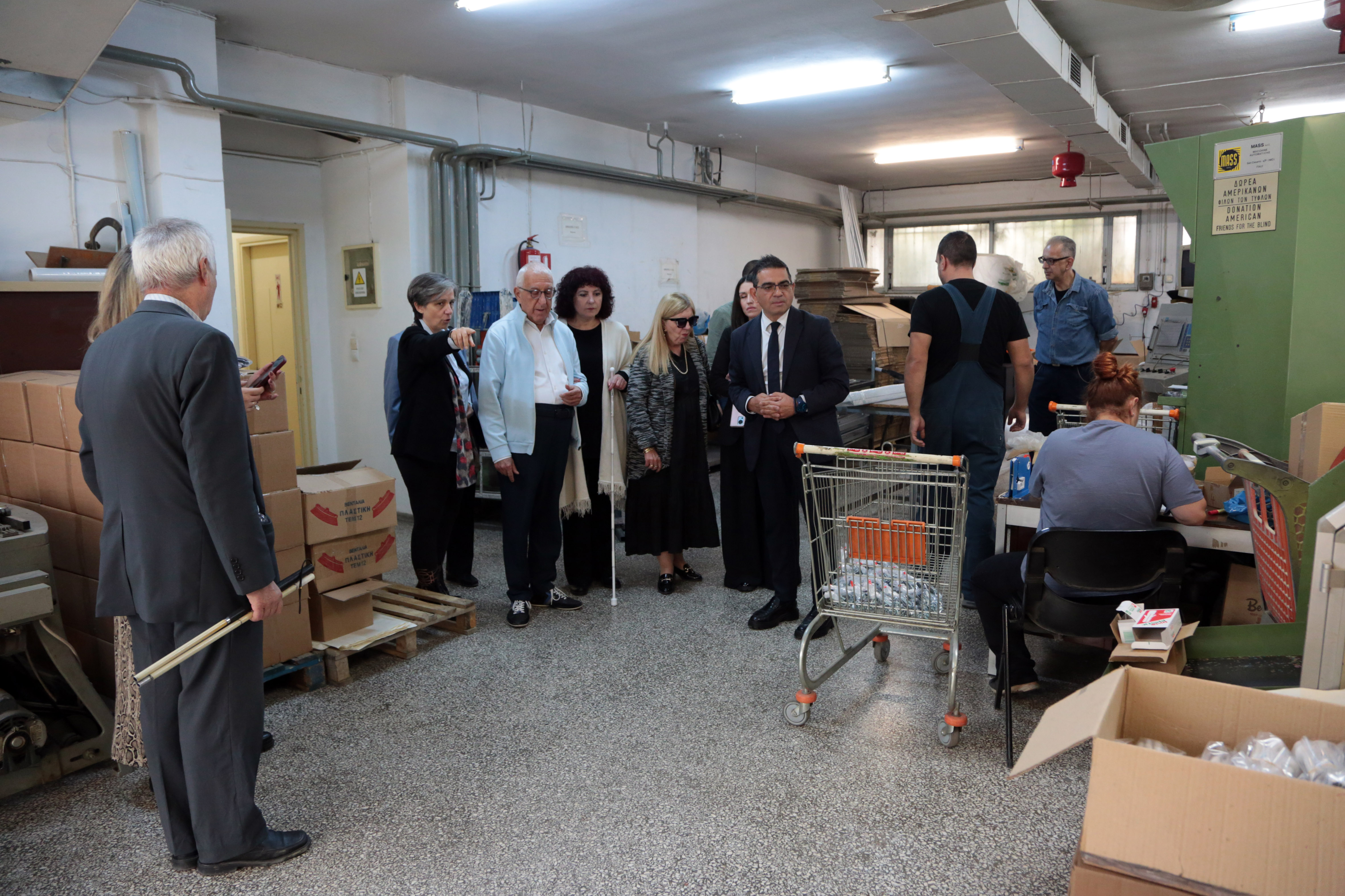 Ακολούθησε ξενάγηση στις εγκαταστάσεις του Φάρου Τυφλών, όπου ο κ. Ν. Κακλαμάνης επισκέφθηκε τη μονάδα κατεργασίας μετάλλων και τη μονάδα παραγωγής βουρτσών και σκουπών, στις οποίες εργάζονται αποκλειστικά άτομα με οπτική αναπηρία. Ο Πρόεδρος της Βουλής είχε την ευκαιρία να γνωρίσει από κοντά το έργο των εργαζομένων, διαπιστώνοντας τον επαγγελματισμό, τη δημιουργικότητα και τη συμβολή τους στην κοινωνική ένταξη και παραγωγική ζωή.