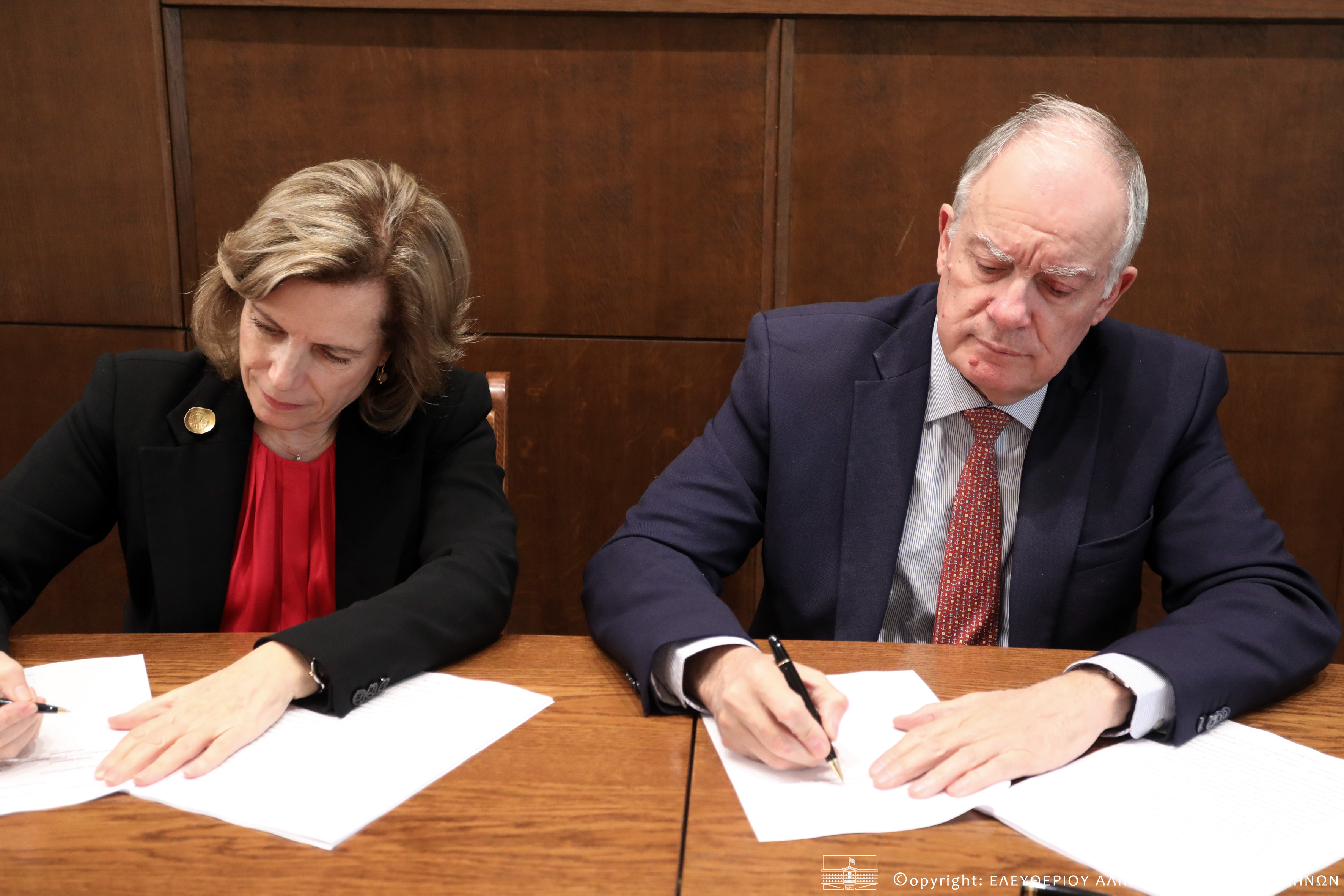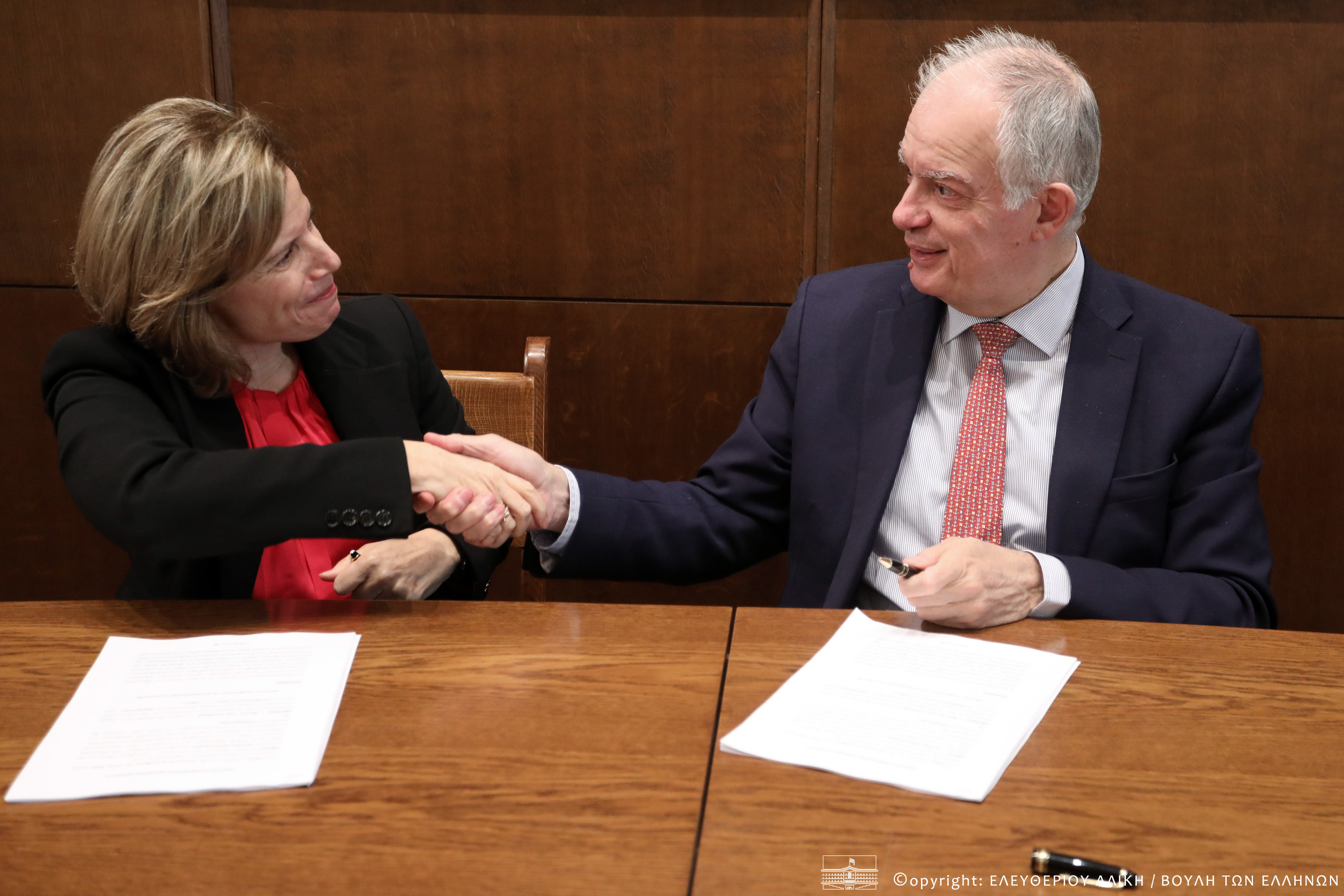 Ο Πρόεδρος της Βουλής και η Πρόεδρος του Ιδρύματος Μποδοσάκη υπέγραψαν σήμερα το συμβόλαιο μίσθωσης του Μεγάρου Μποδοσάκη