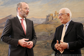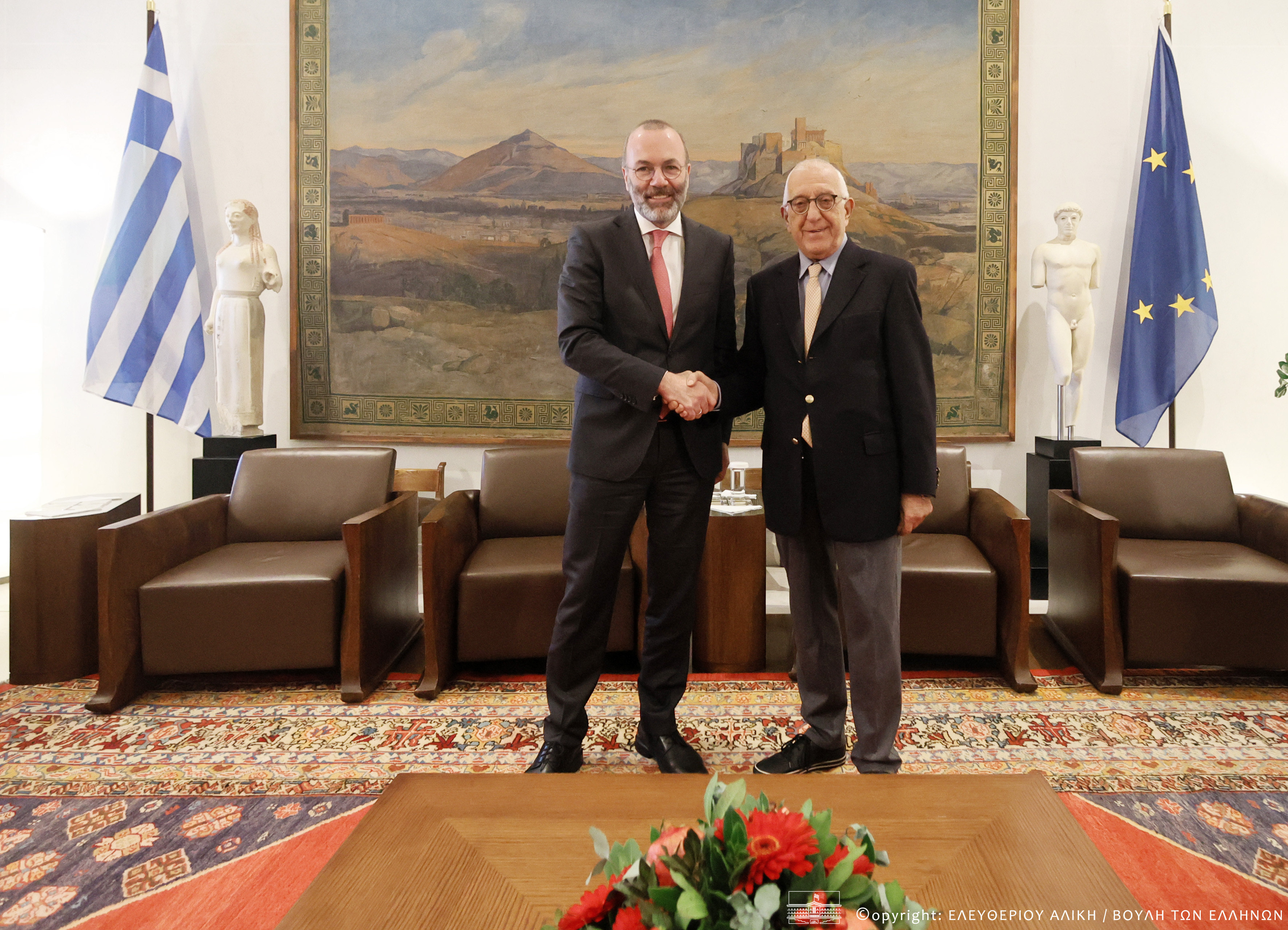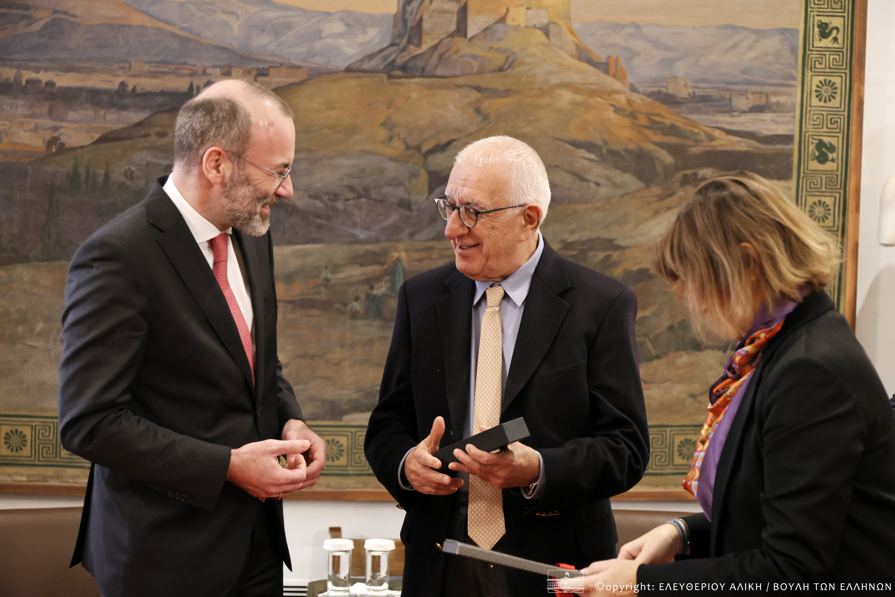 Συνάντηση του Προέδρου της Βουλής των Ελλήνων με τον Πρόεδρο του Ευρωπαϊκού Λαϊκού Κόμματος - Νικήτας Κακλαμάνης: Η Κύπρος αναλαμβάνει την Προεδρία της Ε.Ε. και είναι χωρισμένη στα δύο με στρατό κατοχής. Κανείς δεν μιλάει στην Ευρώπη γι’ αυτό - Μάνφρεντ Βέμπερ: «Η Ευρώπη στηρίζει πλήρως την Ελλάδα και την Κύπρο».
