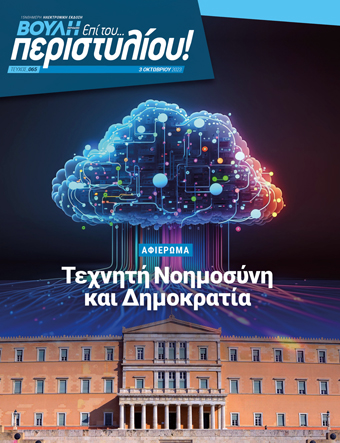 Τις επιπτώσεις της Τεχνητής Νοημοσύνης στη λειτουργία της Δημοκρατίας και των Κοινοβουλίων διερευνά το εκτεταμένο αφιέρωμα του 65ου τεύχους του ηλεκτρονικού περιοδικού της Βουλής "Επί του... περιστυλίου!" που αναρτήθηκε σήμερα στον ιστότοπο του Κοινοβουλίου.