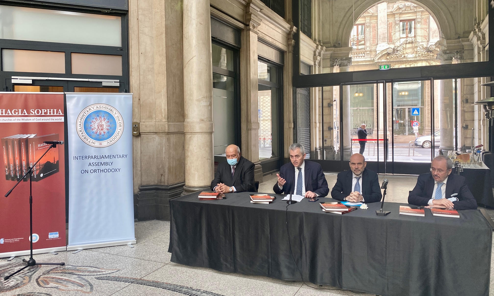 «Είμαι ιδιαίτερα ευτυχής που βρισκόμαστε στο Μιλάνο, μια πόλη που έχει χαραχτεί στην παγκόσμια μνήμη ως ο χώρος που συντάχθηκε το περίφημο διάταγμα των Μεδιολάνων, το διάταγμα της ανεξιθρησκείας και της ελευθερίας της Εκκλησίας το 313. Ένα γεγονός που θα σημαδέψει ανεξίτηλα την ευρωπαϊκή ιστορία και το ευρωπαϊκό πνεύμα όλους τους επόμενους αιώνες». Με αυτά τα λόγια ο Γενικός Γραμματέας της Διακοινοβουλευτικής Συνέλευσης Ορθοδοξίας, μέλος της Βουλής των Ελλήνων, δρ Μάξιμος Χαρακόπουλος, ξεκίνησε την ομιλία του στην παρουσίαση του Τόμου «Αγία Σοφία: Οι ναοί της του Θεού Σοφίας ανά τον κόσμο» στη Galleria Meravigli στο Μιλάνο, παρουσία του υφυπουργού παρά τω πρωθυπουργώ κ. Μπρούνο Ταμπάτσι, ο οποίος, μάλιστα, χαιρέτισε με ιδιαίτερα θερμούς λόγους την πρωτοβουλία της ΔΣΟ.
