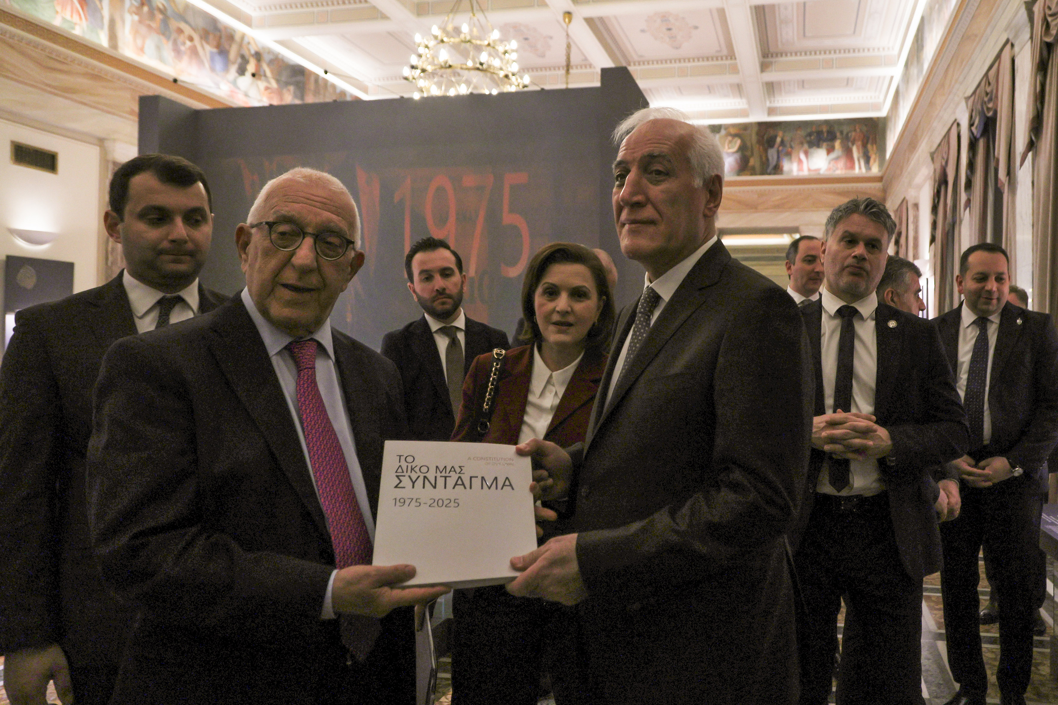 Μετά το πέρας της συνάντησης, ο κ. Vahagn Khachaturyan ξεναγήθηκε στους χώρους της Βουλής όπου και ενημερώθηκε για την ιστορία του κτιρίου ενώ στη συνέχεια, επισκέφθηκε την έκθεση «Το Δικό μας Σύνταγμα 1975-2025».