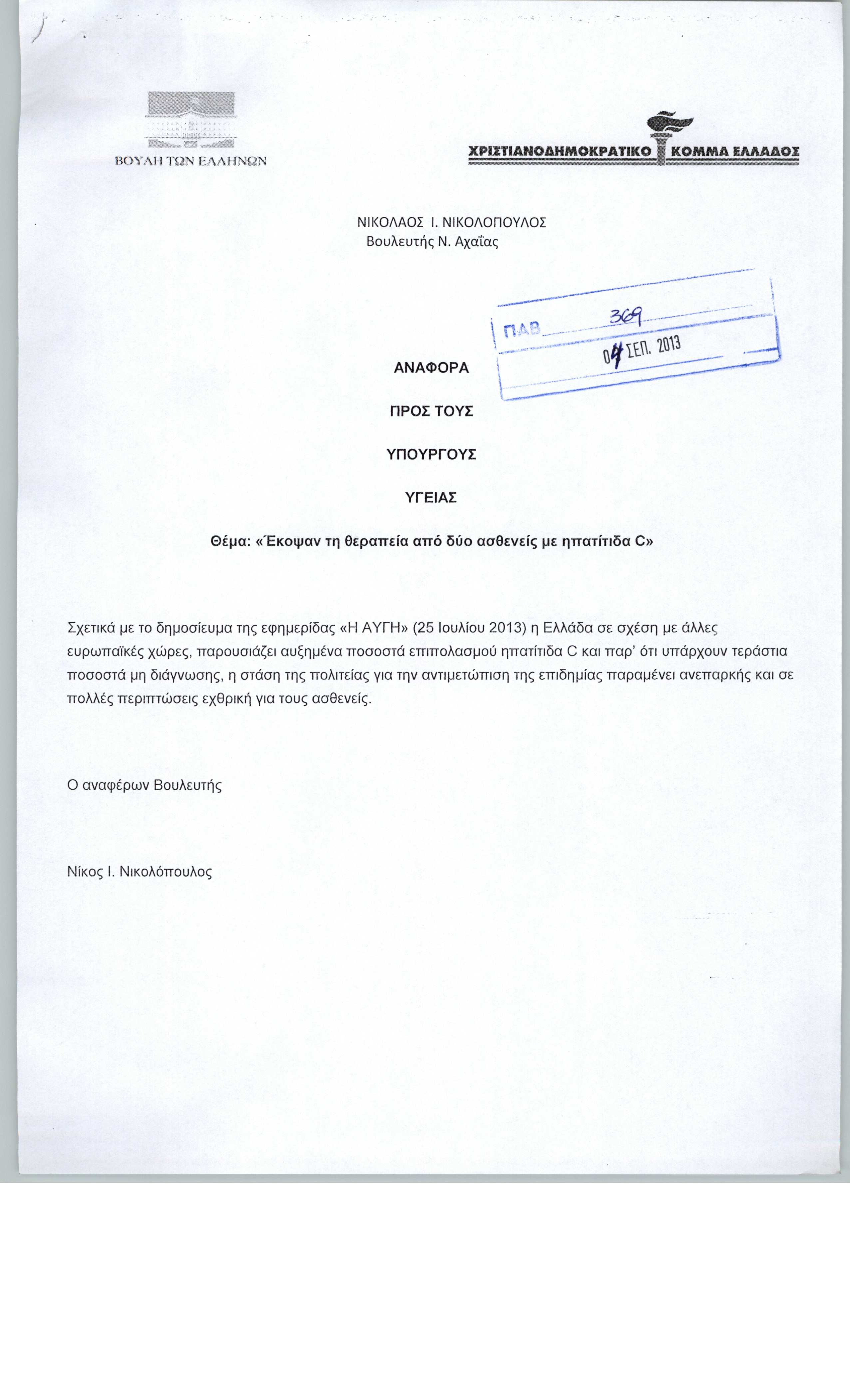 - το οποίο αφορά τη στάση της Πολιτείας απέναντι σε ασθενείς με ηπατίτιδα C.