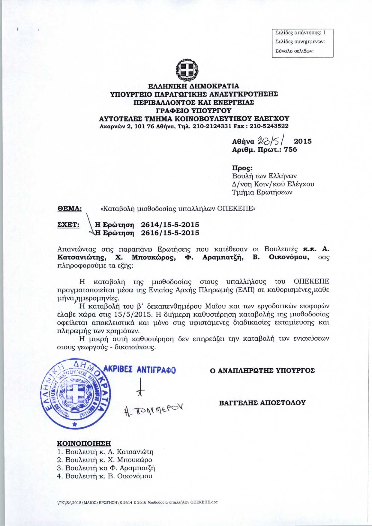 - Γιατί καθυστέρησε ο μιθός του Μαΐου 2015 των υπαλλήλων του ΟΠΕΚΕΠΕ;
