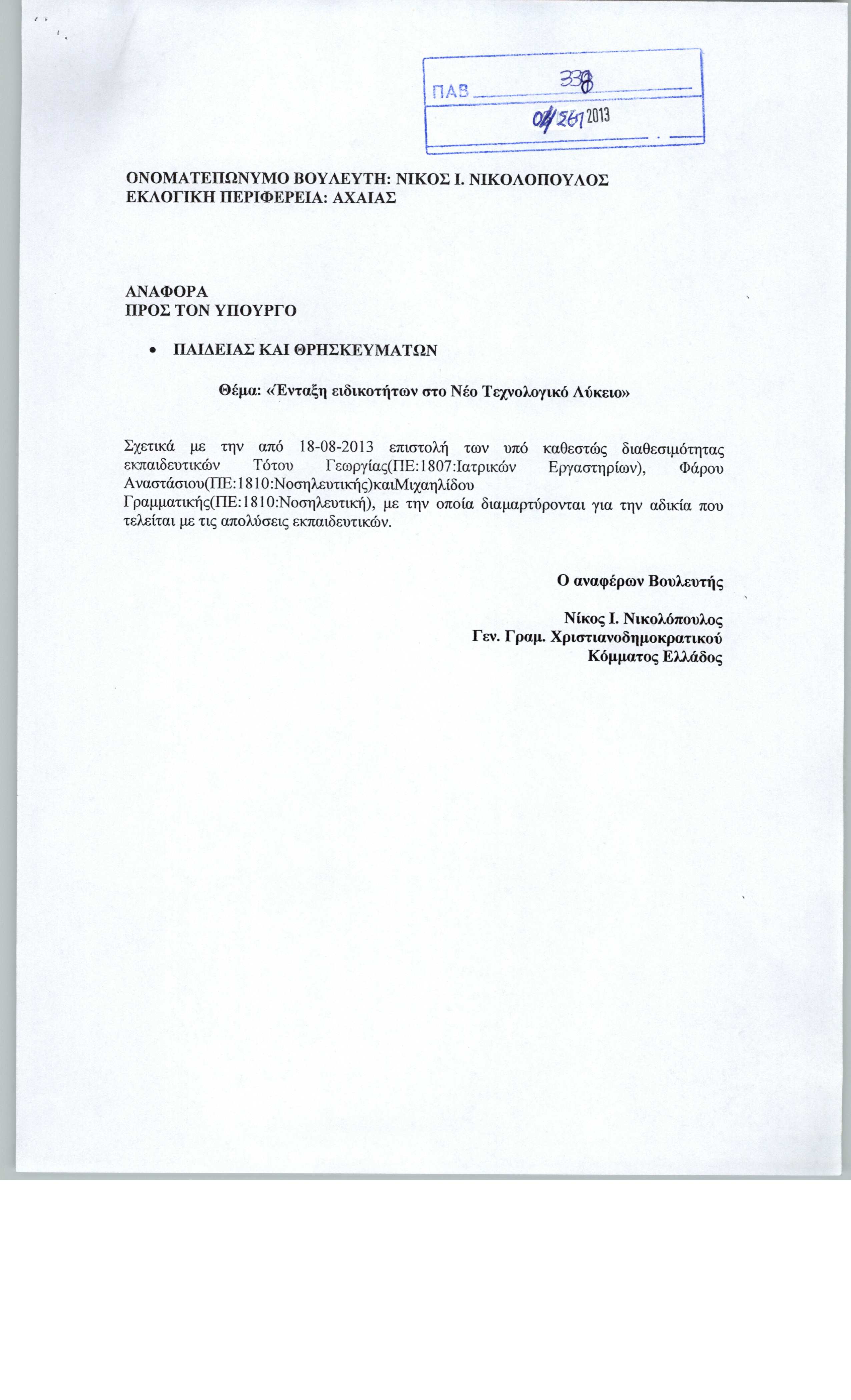 | Νικολόπουλος Ιωάννου Νικόλαος |