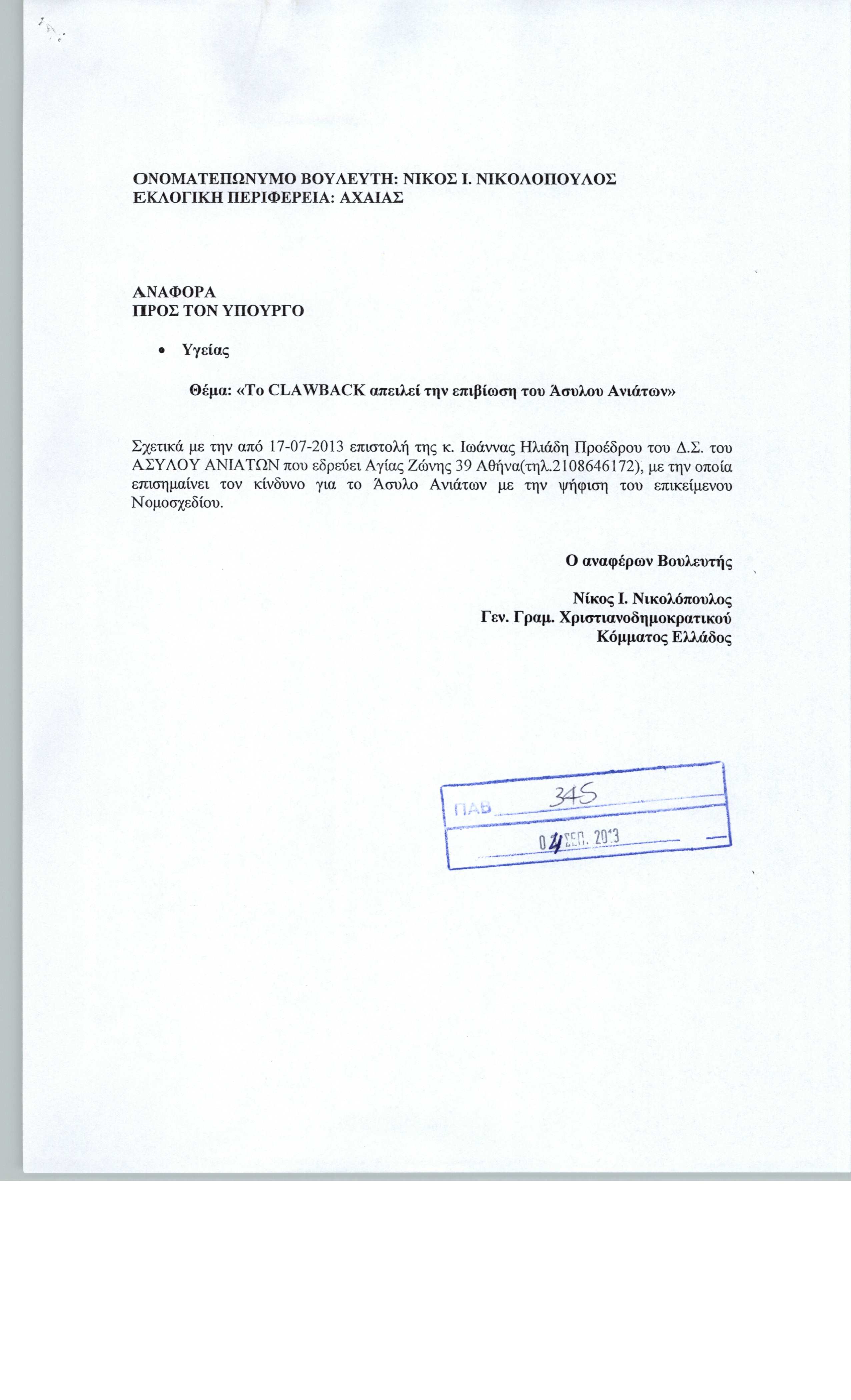 - επισημαίνει τον κίνδυνο που διατρέχει η επιβίωση του Ιδρύματος, λόγω της ψήφισης διάταξης σε πολυνομοσχέδιο του Υπουργείου Οικονομικών που αφορά το μέτρο του /clawback/.