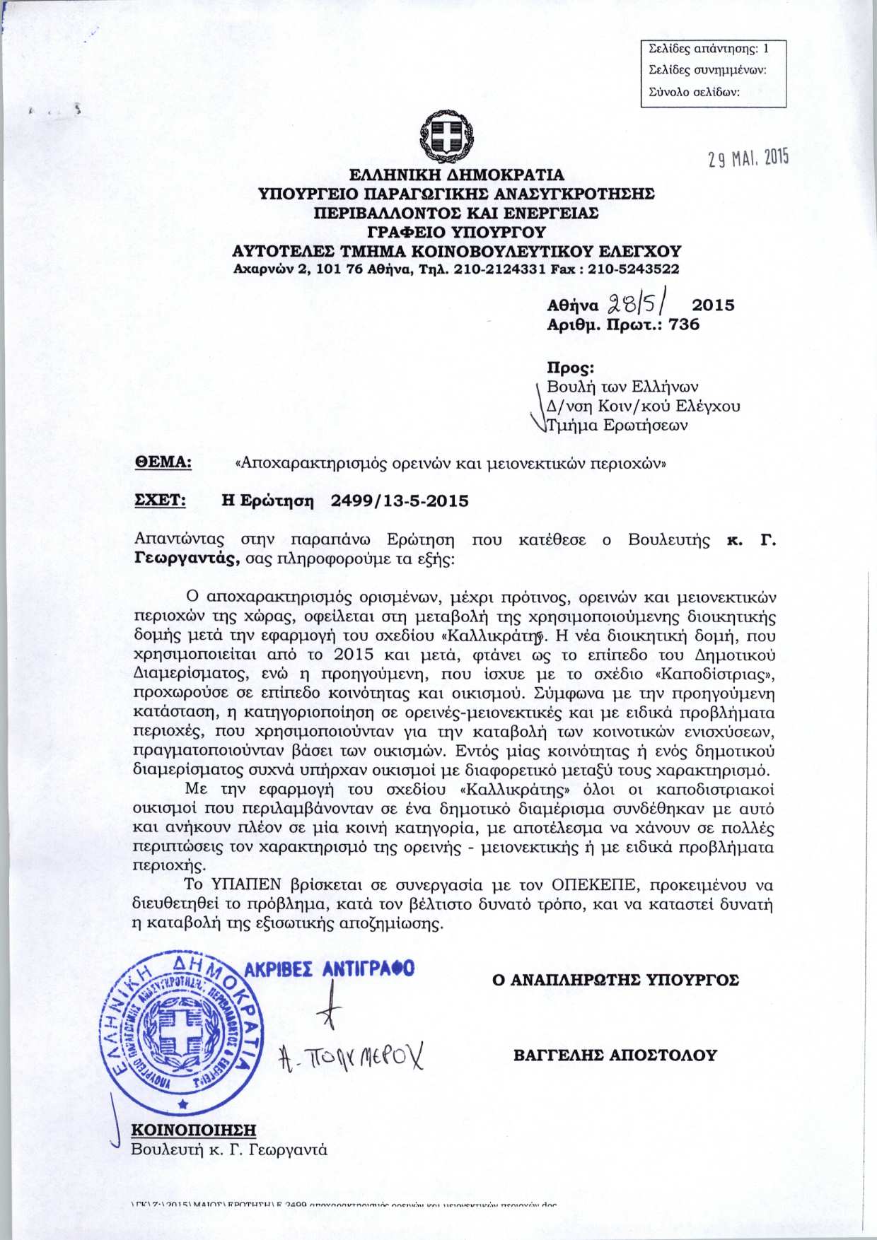- Λαφαζάνης Παναγιώτης (Υπουργός Παραγωγικής Ανασυγκρότησης, Περιβάλλοντος και Ενέργειας)