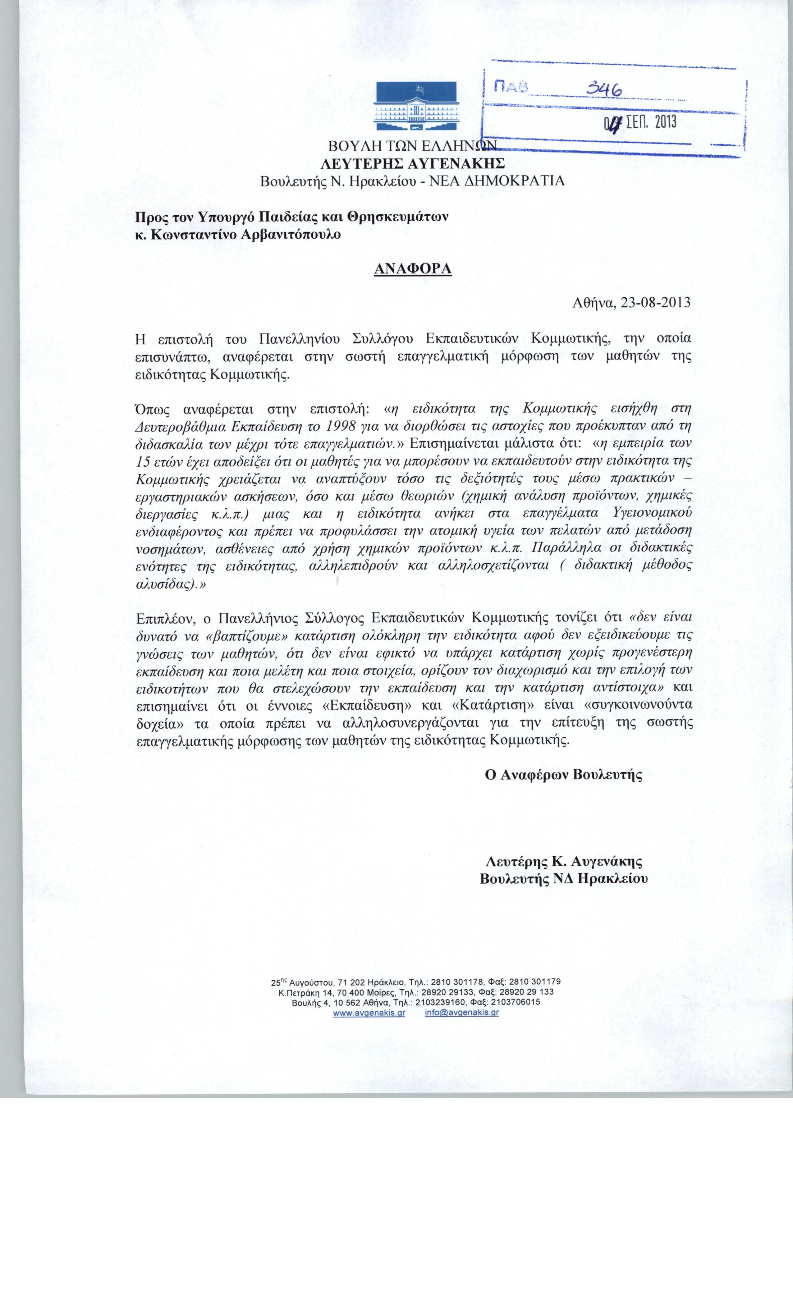 | Αυγενάκης Κωνσταντίνου Ελευθέριος |