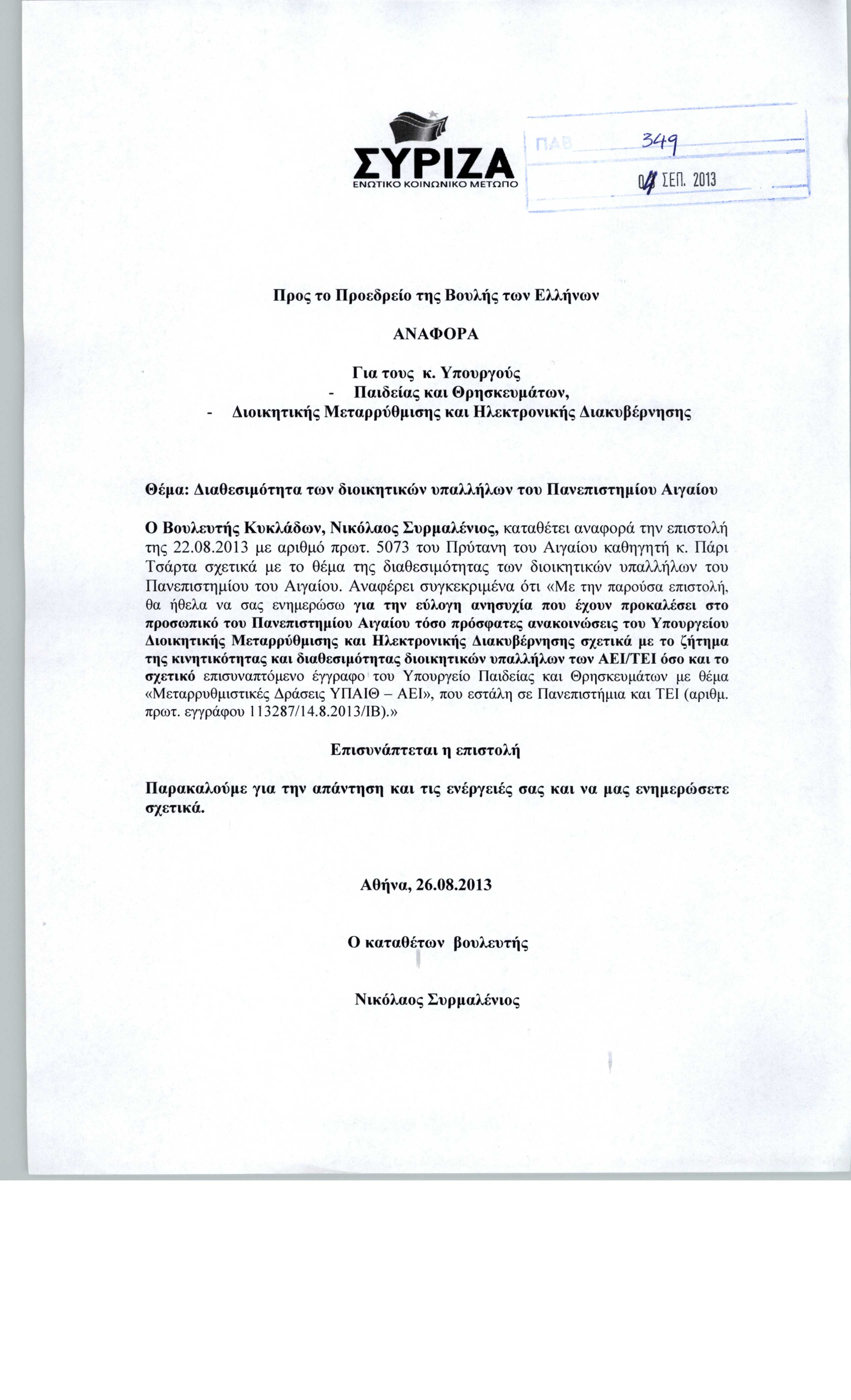 - επισημαίνει τα σοβαρά προβλήματα που θα δημιουργήσει στις τοπικές κοινωνίες η κινητικότητα και διαθεσιμότητα των διοικητικών υπαλλήλων των ΑΕΙ και ΤΕΙ.