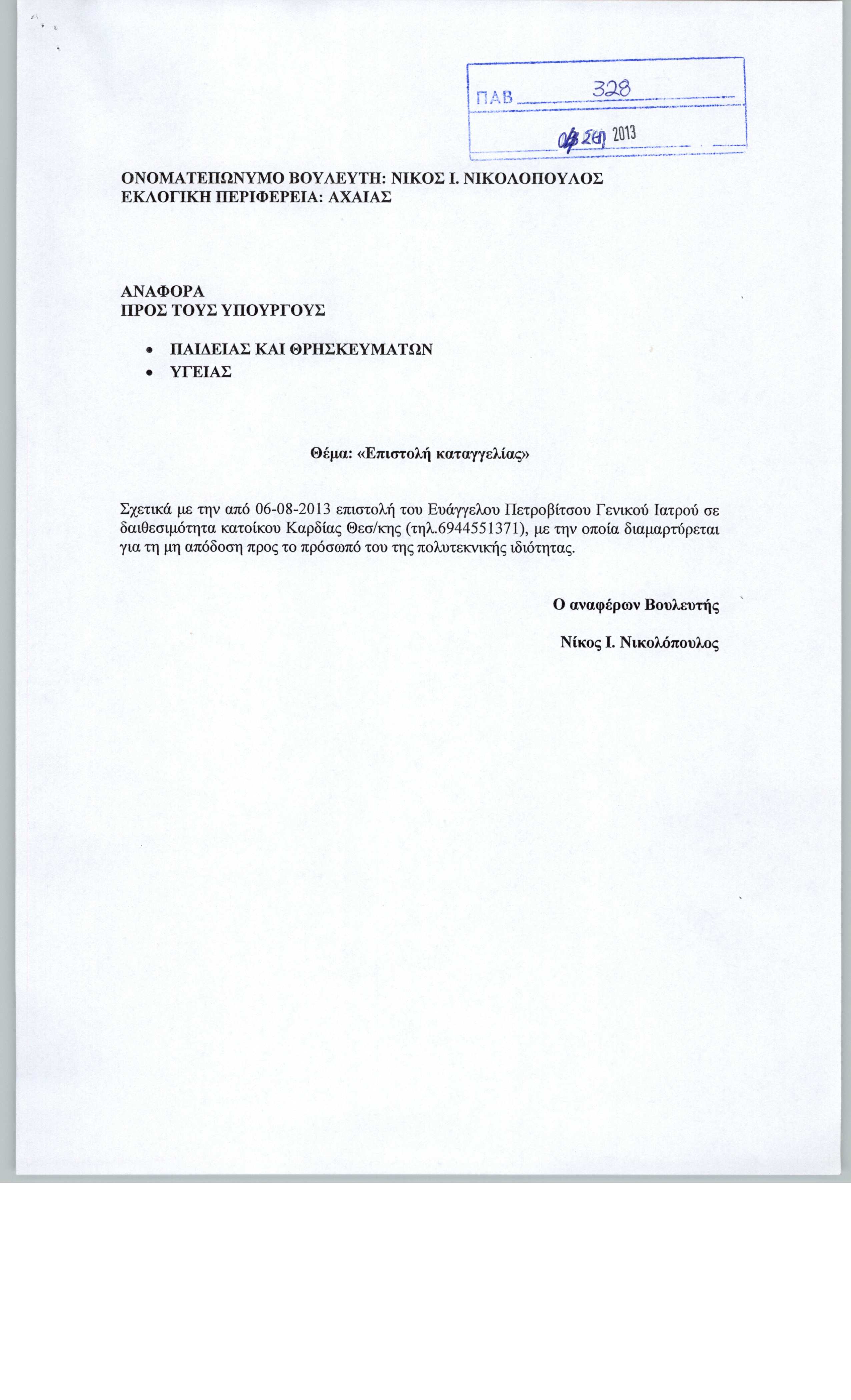 | Νικολόπουλος Ιωάννου Νικόλαος |